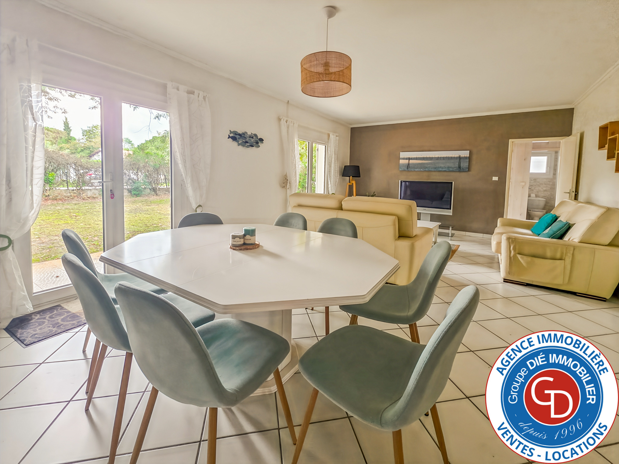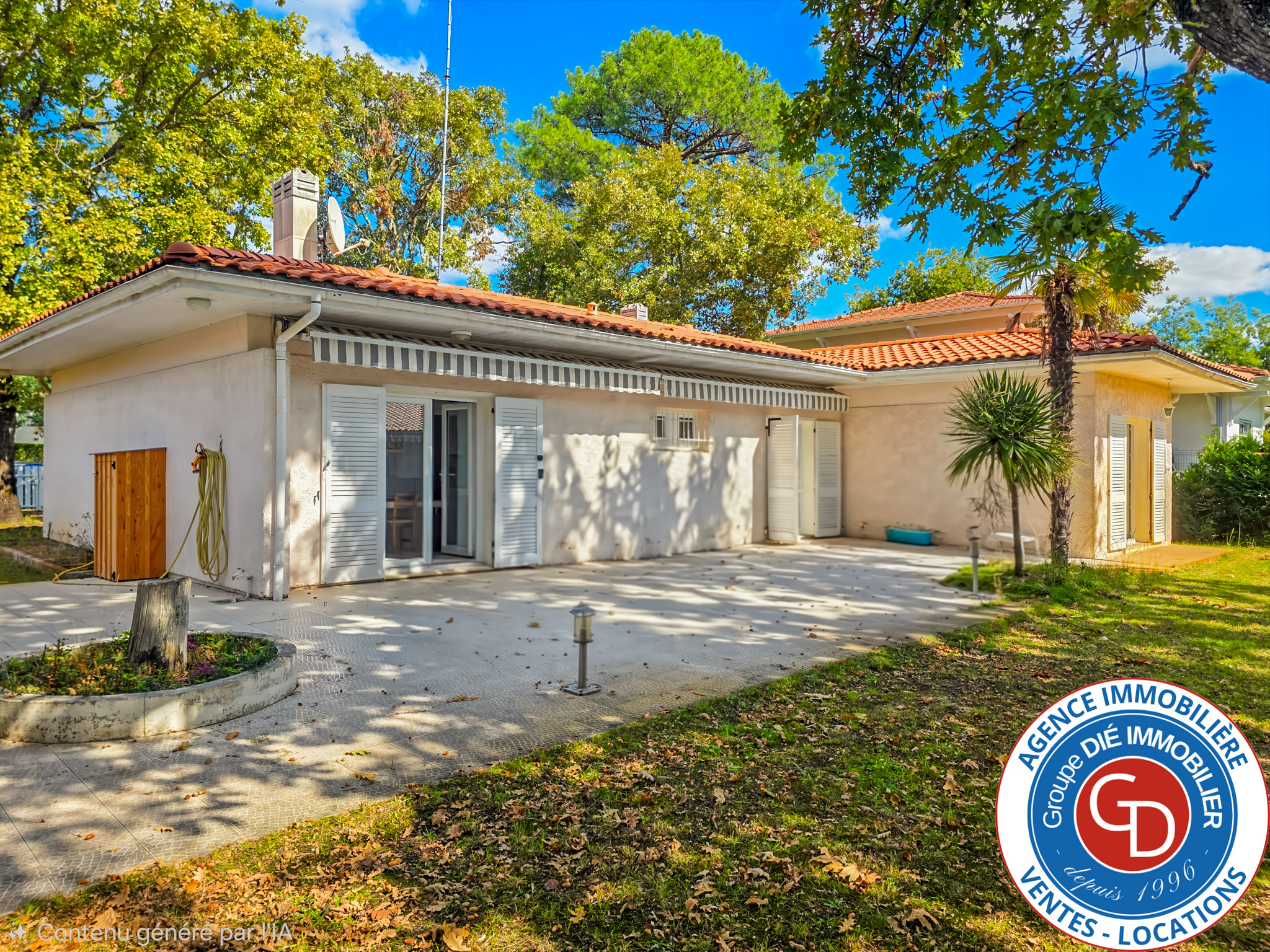 MANDAT EXCLUSIF Taussat-Les-Bains, Le Groupe DIÉ IMMOBILIER a l'honneur de vous présenter à la ventre une très belle villa (115 M2 avec garage) bien entretenue de plain-pied avec 3 chambres, édifiée sur une parcelle de terrain d’environ 850 m2 avec garage et piscinable.