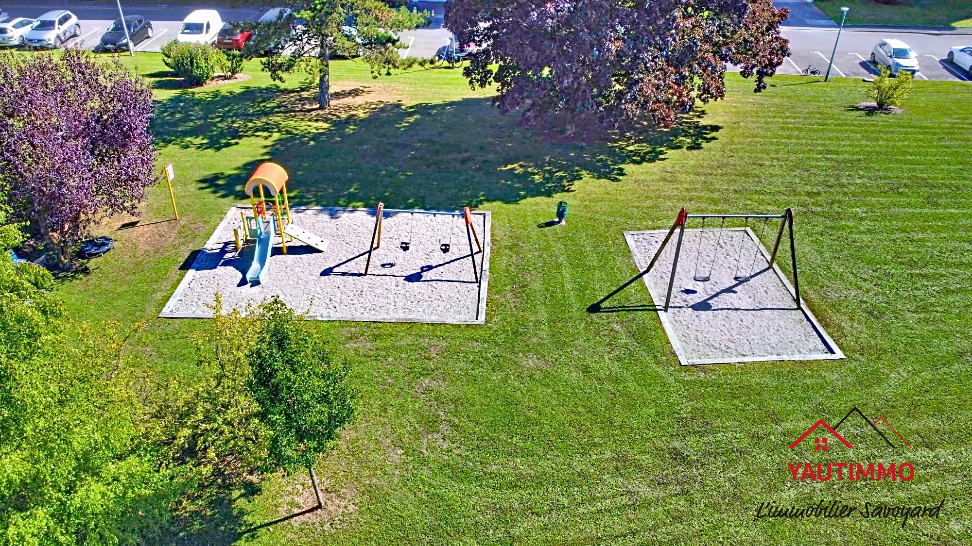 La copropriété, sécurisée par un portail, dispose d’un immense parc arboré avec aire de jeux pour enfants — un véritable havre de verdure en cœur urbain, idéal pour les familles.