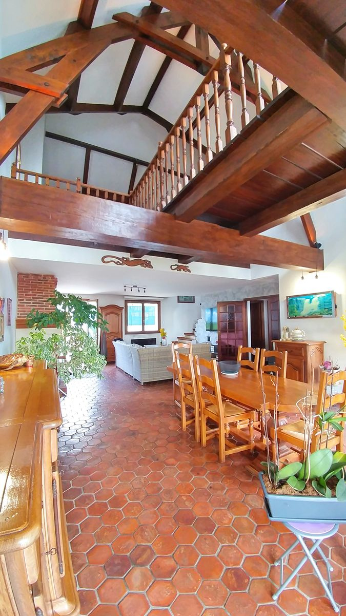 - Séjour salon traversant de 49 m² avec cheminée et plafond cathédral, très lumineux