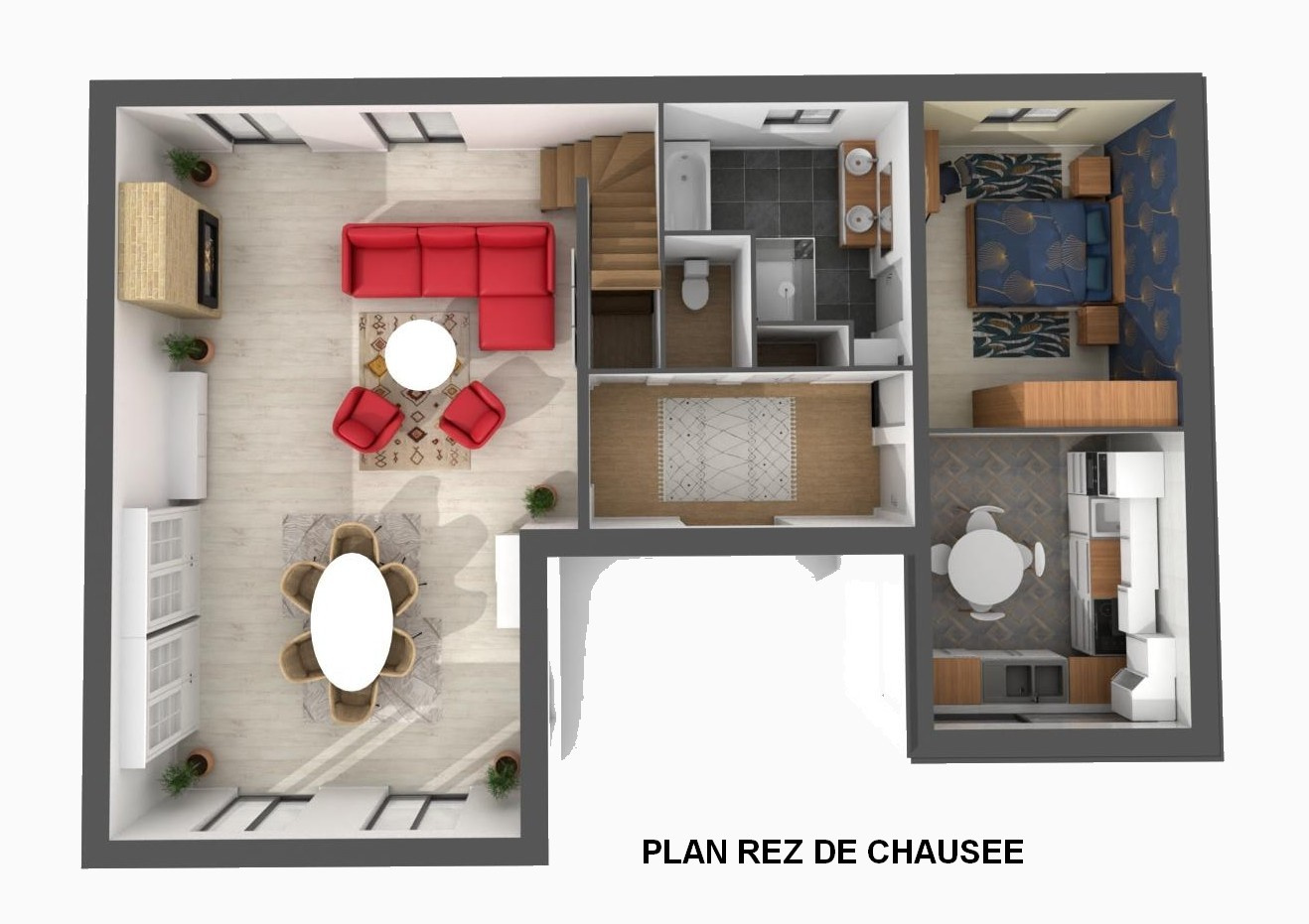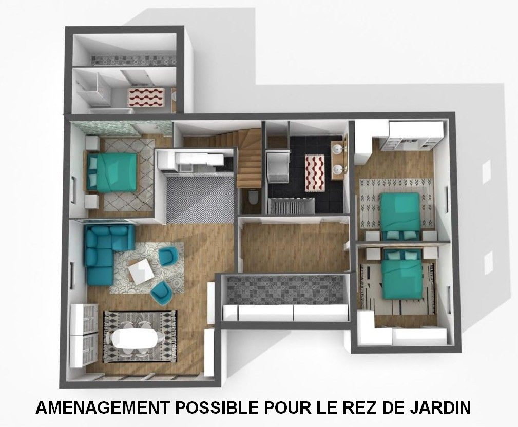 Édifiée sur un terrain de 731 m², la maison s’organise sur trois niveaux et séduira aussi bien une famille large qu’une personne avec une activité recherchant des espaces supplémentaires.