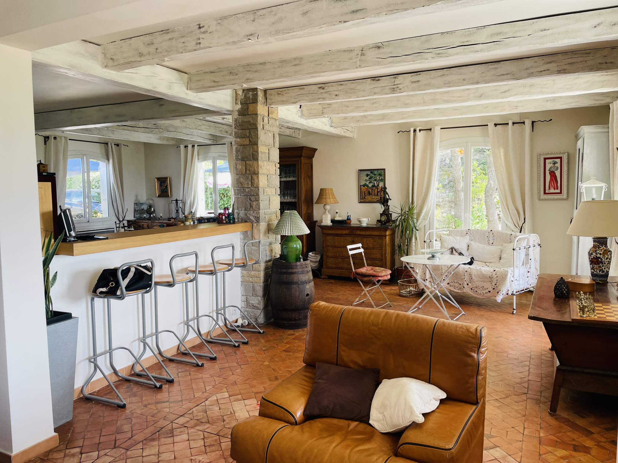 BALAGUER IMMOBILIER vous propose une Maison d'exception, le charme l'authenticité avec une vue Mer à 180° au calme pour cette propriété sur 2 niveaux, une partie de plein pied Type 4 et un Type 2 au Rdc tout équiper. Le bien et édifiée sur 2000 m² de terrain clos avec une piscine de 18 x 6.5..... Vous aimez les volumes généreux et les grands espaces… Cette Maison d'environ de 145 m², est faite pour vous ! la Maison s'ouvre sur de généreux volumes intérieurs, inondée de lumière naturelle. Vous bénéficiez d'un extraordinaire espace de réception, cuisine US, buanderie, salon séjour avec accès direct à une grande terrasse privative et sont jardin paysagé de 1000 m² pouvant accueillir, selon vos attentes, vos envies et vos inspirations. De très belles prestations, avec 3 chambres, salle d'eau, WC séparer. Portail automatique nombreuses places de parking privatives. De l'hauthentique dans un écrin de verdure !!