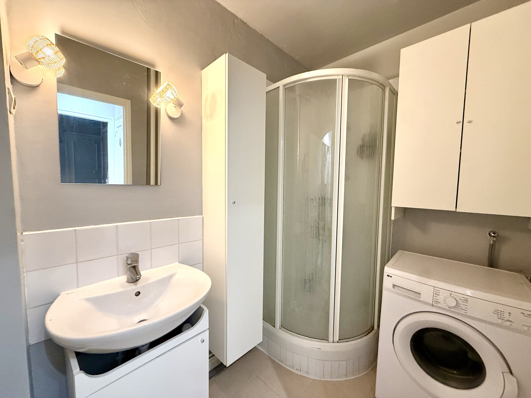 L'intérieur est lumineux (Sud Est) avec : une entrée, un dressing, séjour, cuisine ouverte équipée (que l’on peut fermer), une grande chambre, salle d’eau avec espace pour un lave-linge, wc séparés.