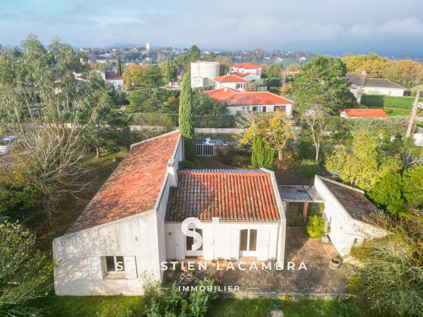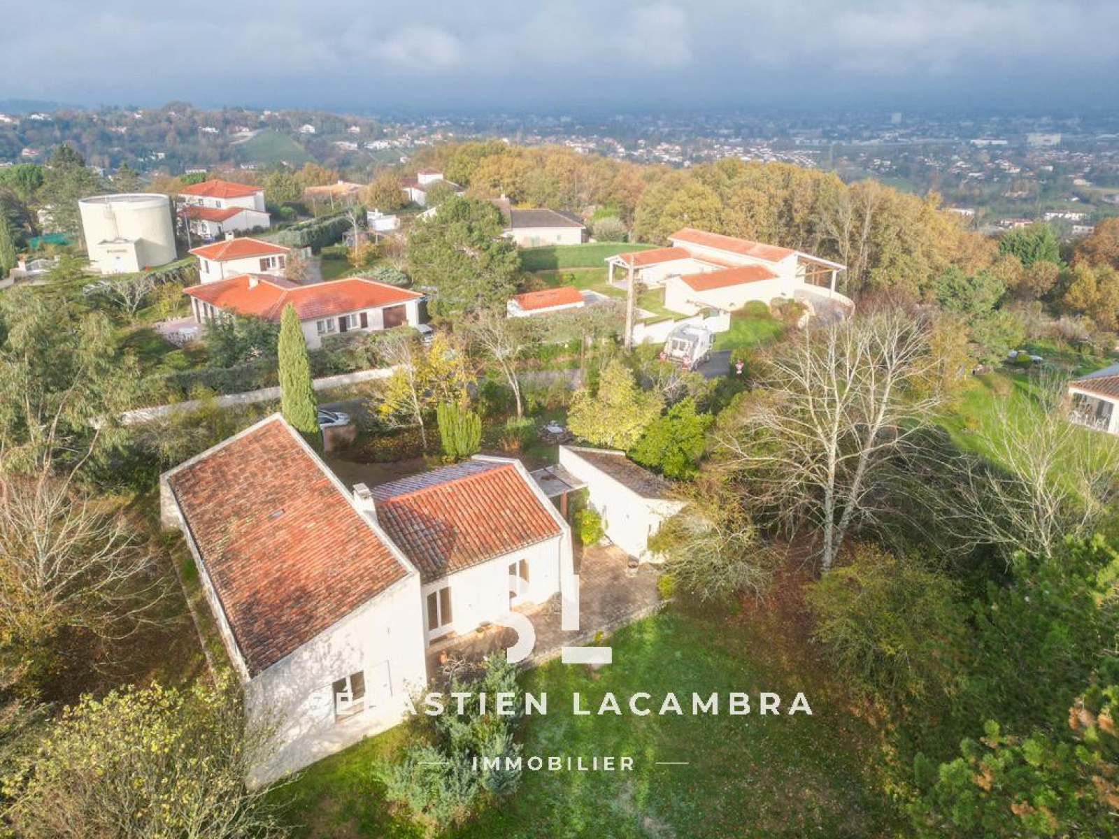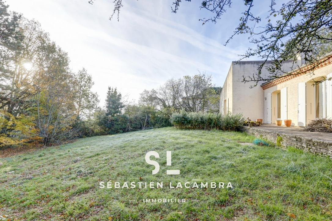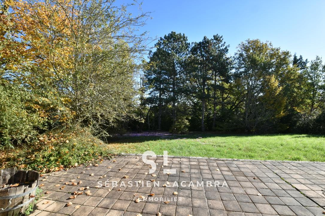 Le terrain, d’une superficie de 2 500 m², est arboré et agréable à vivre. Un petit bois occupe la partie basse de la parcelle et renforce l’intimité de l’ensemble, créant une atmosphère paisible et naturelle.