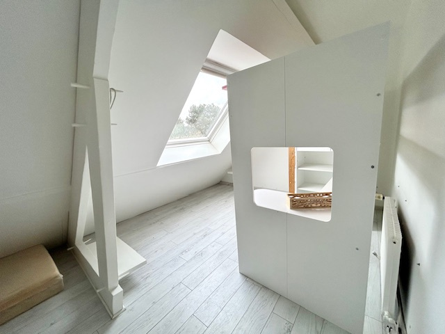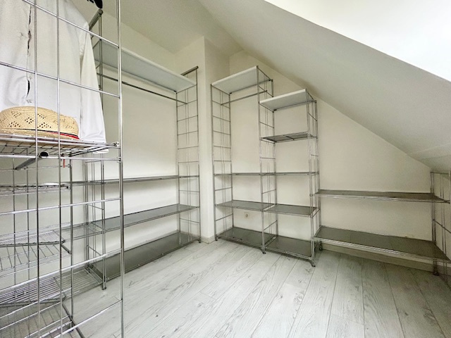 A l'étage, vous trouverez un palier, et trois chambres d'env. 8m2, 12m2 et 20m2 au sol.