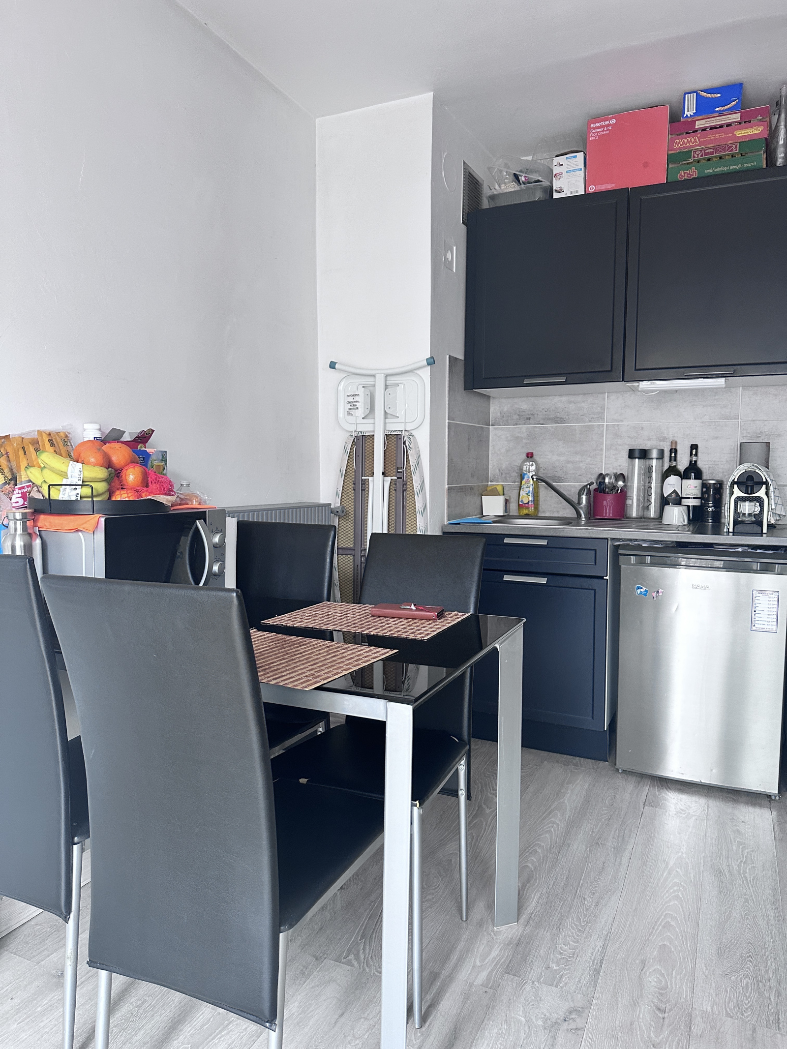 LE CANNET SQUARE CARNOT : STUDIO DE 21 M2 RÉNOVÉ EN ÉTAGE ÉLÉVÉ AVEC ASCENSEUR, COMPRENANT UNE ENTRÉE, UNE PIÉCE À VIVRE CLIMATISÉE AVEC SA CUISINE ÉQUIPÉE ET PLACARD DE RANGEMENT, SALLE DE DOUCHE AVEC WC, GRANDE TERRASSE, DANS UNE RÉSIDENCE AGRÉABLE ET GARDIENNÉE AU PIED DE TOUTES LES COMMODITÉS.