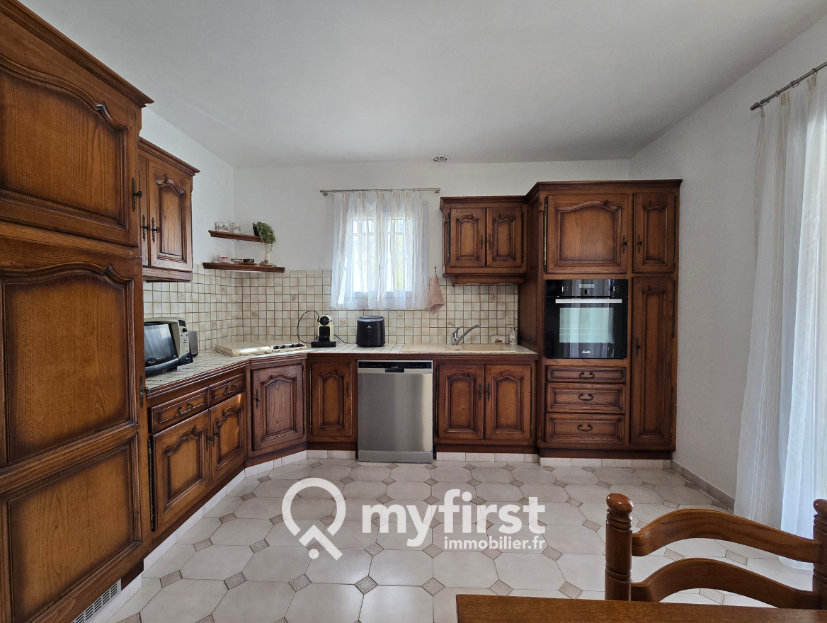 Édifiée en 1982 sur une parcelle d’environ 700 m², cette construction traditionnelle développe aujourd’hui près de 145 m² habitables, avec un potentiel particulièrement rare sur le secteur. Dès l’entrée, la maison séduit par une pièce de vie lumineuse, tournée vers l’extérieur, prolongée par une cuisine fonctionnelle. Le rez-de-chaussée accueille également deux chambres, une salle de bains et des WC.