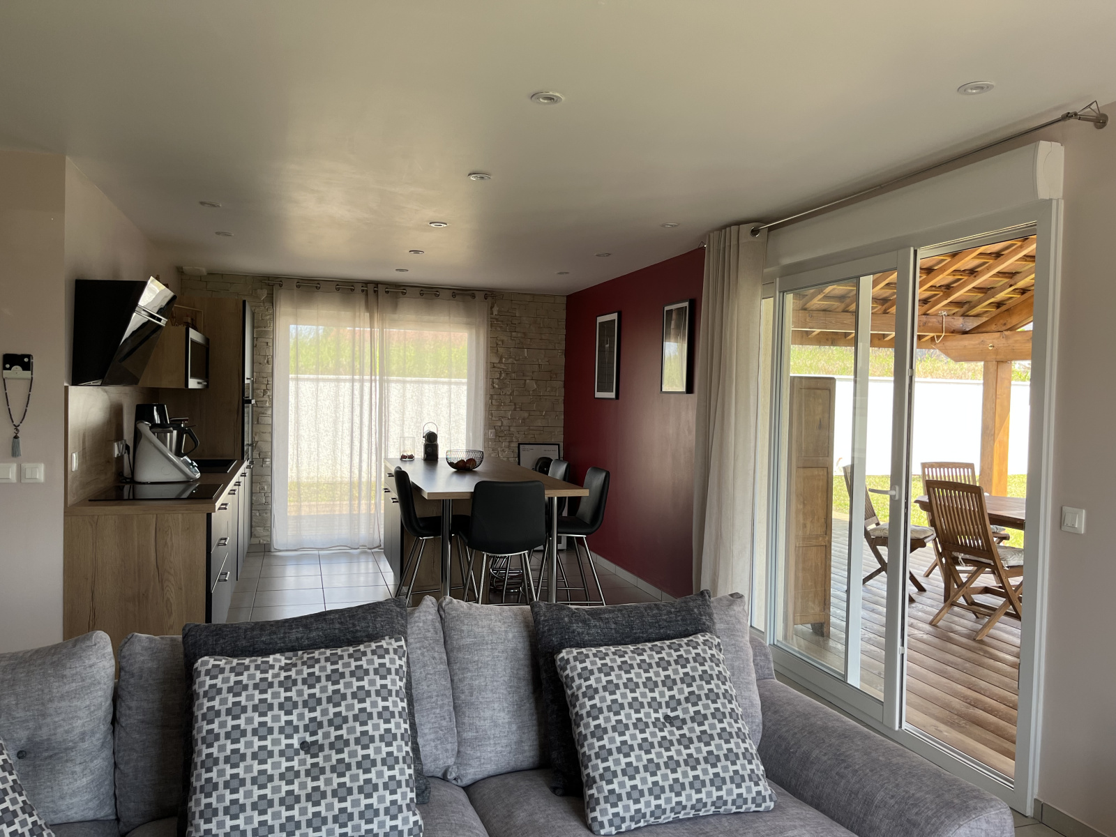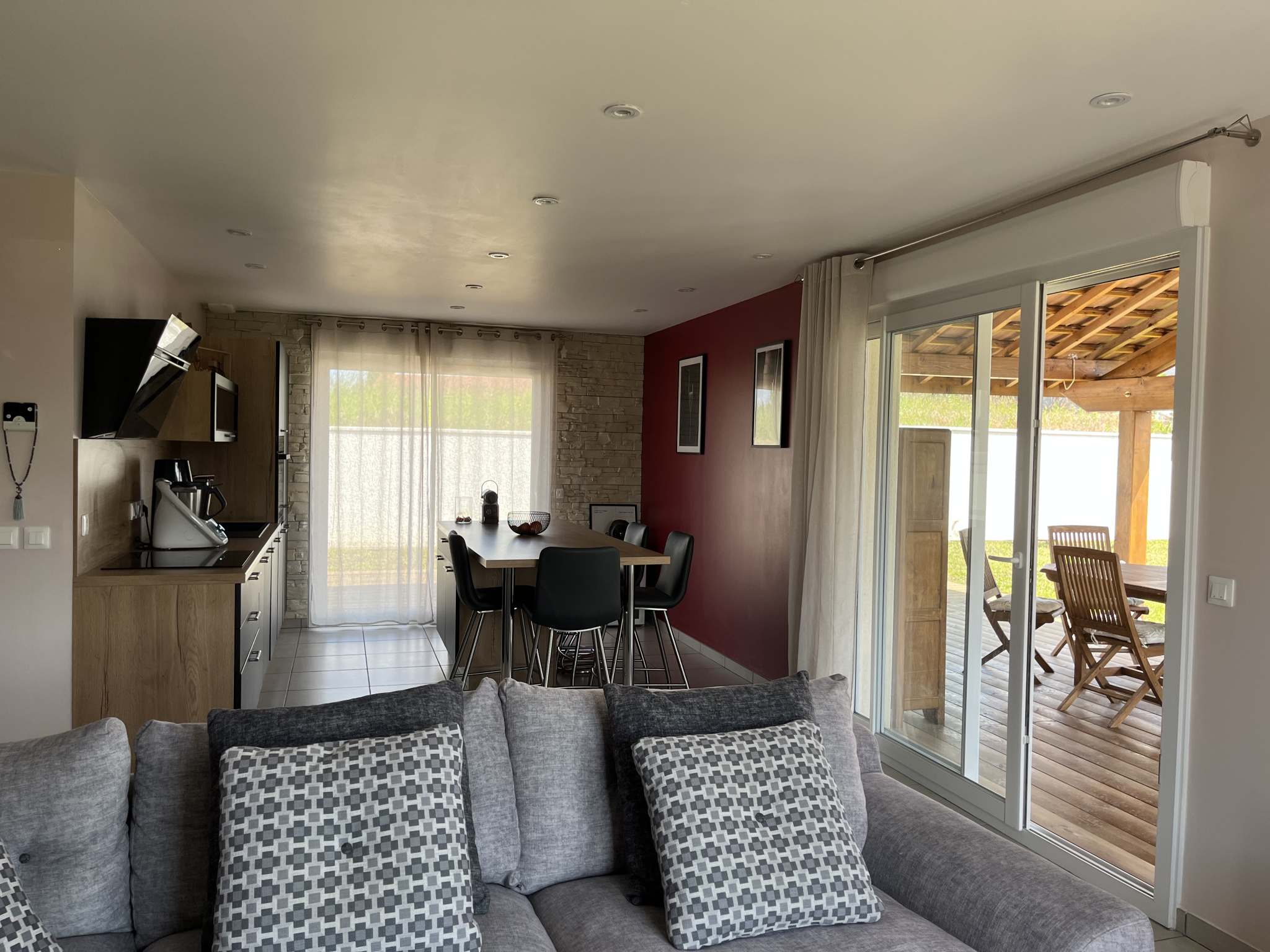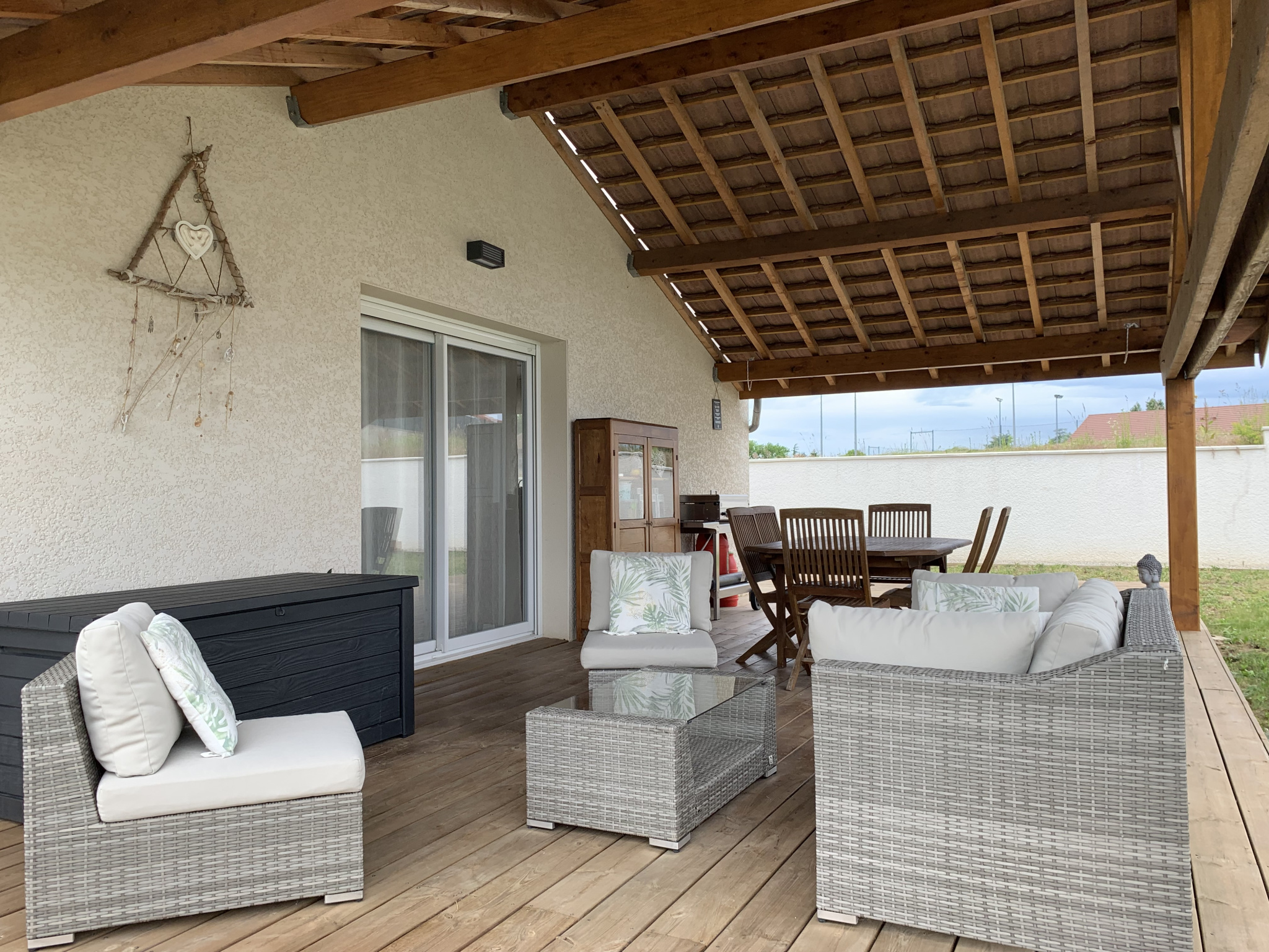 Accessibles par la cuisine, le sejour ou les chambres, les 90 m² de terrasse dont une grande partie couverte vous permettront de profiter de la chaleur ou de la fraîcheur une grande partie de l'année, selon les heures et les saisons.