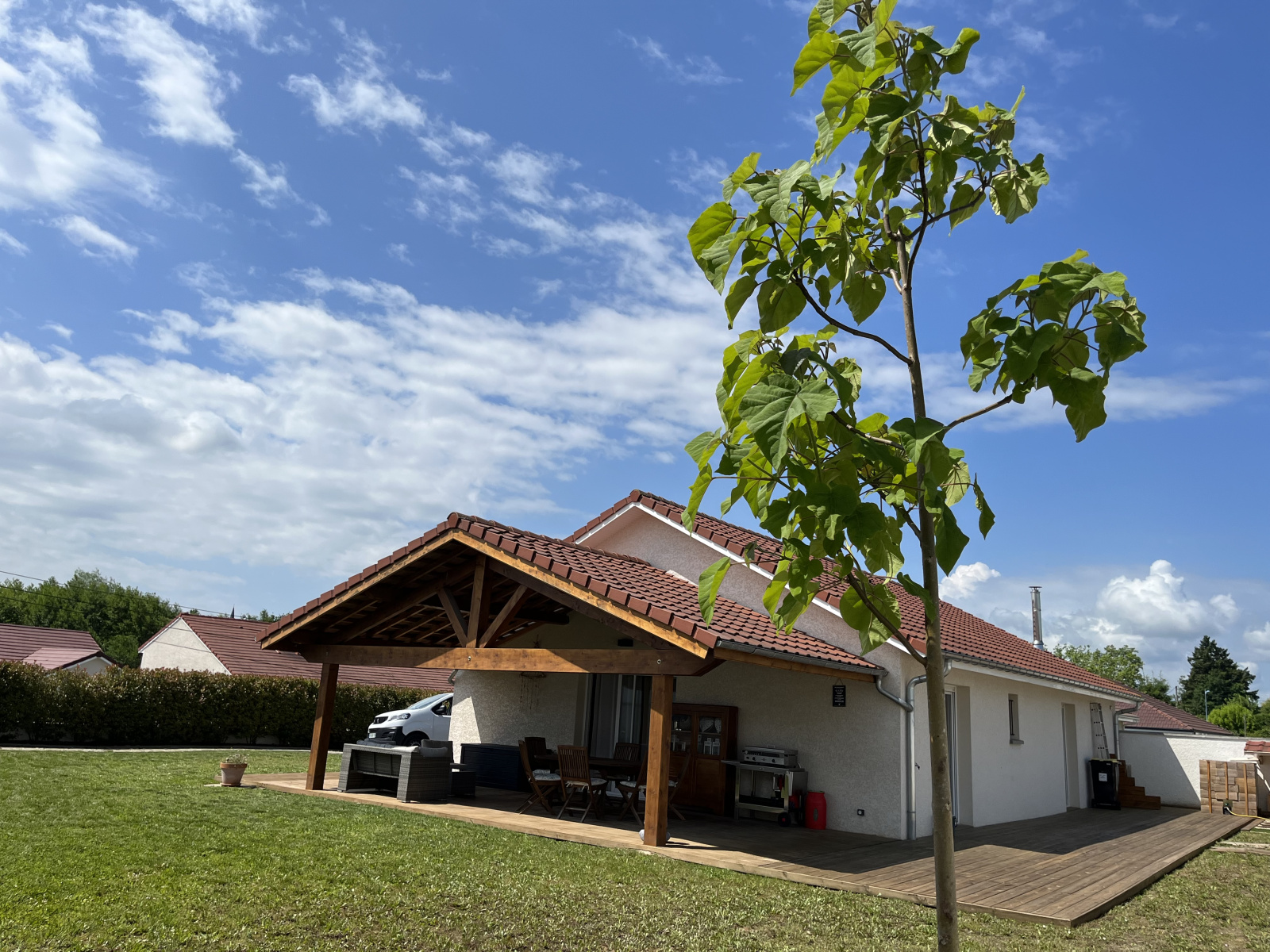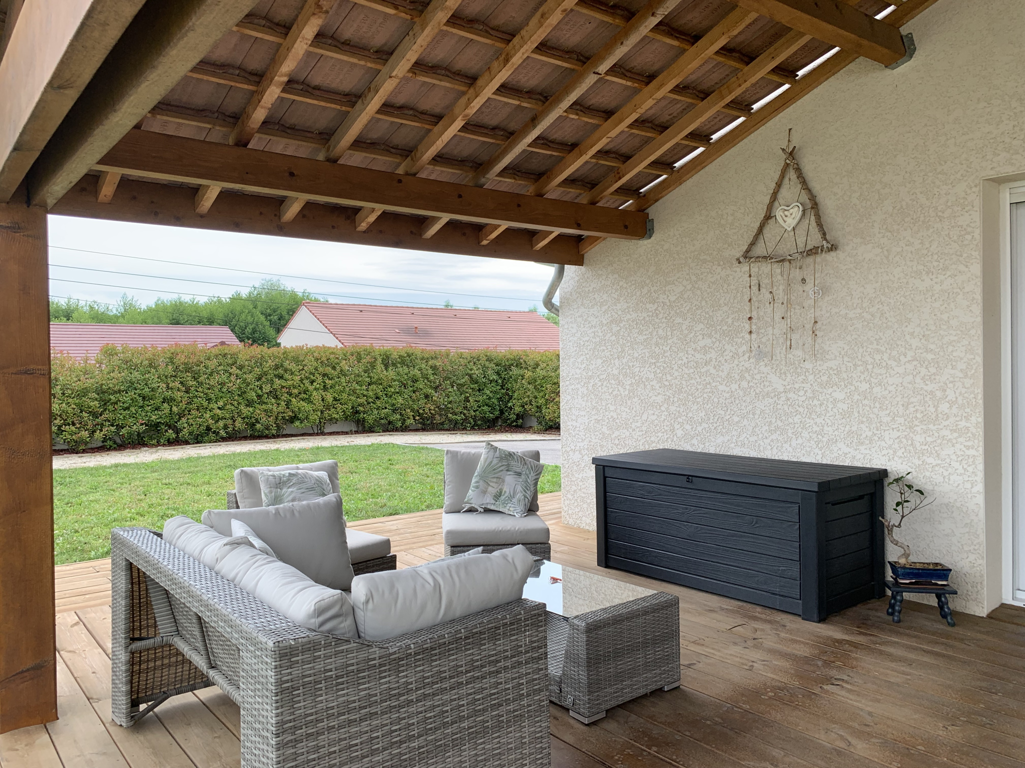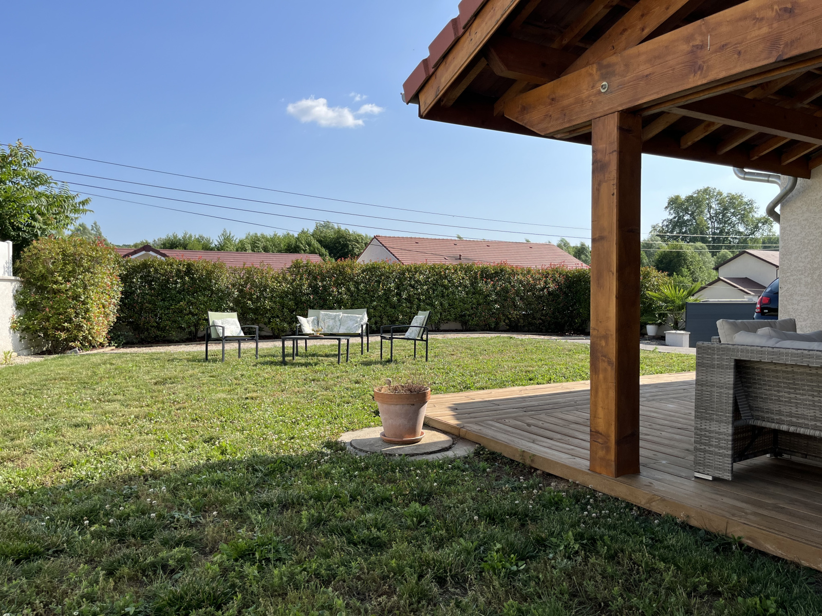 Accessibles par la cuisine, le sejour ou les chambres, les 90 m² de terrasse dont une grande partie couverte vous permettront de profiter de la chaleur ou de la fraîcheur une grande partie de l'année, selon les heures et les saisons.