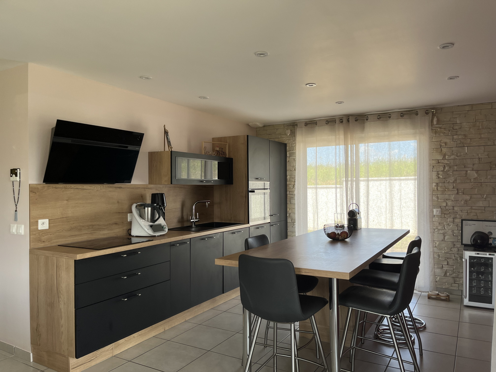 Avec son îlot central permettant d'accueillir 7 convives, la cuisine AVIVA est ouverte sur le séjour pour plus de convivialité et participe à un bel espace de vie de 45 m².