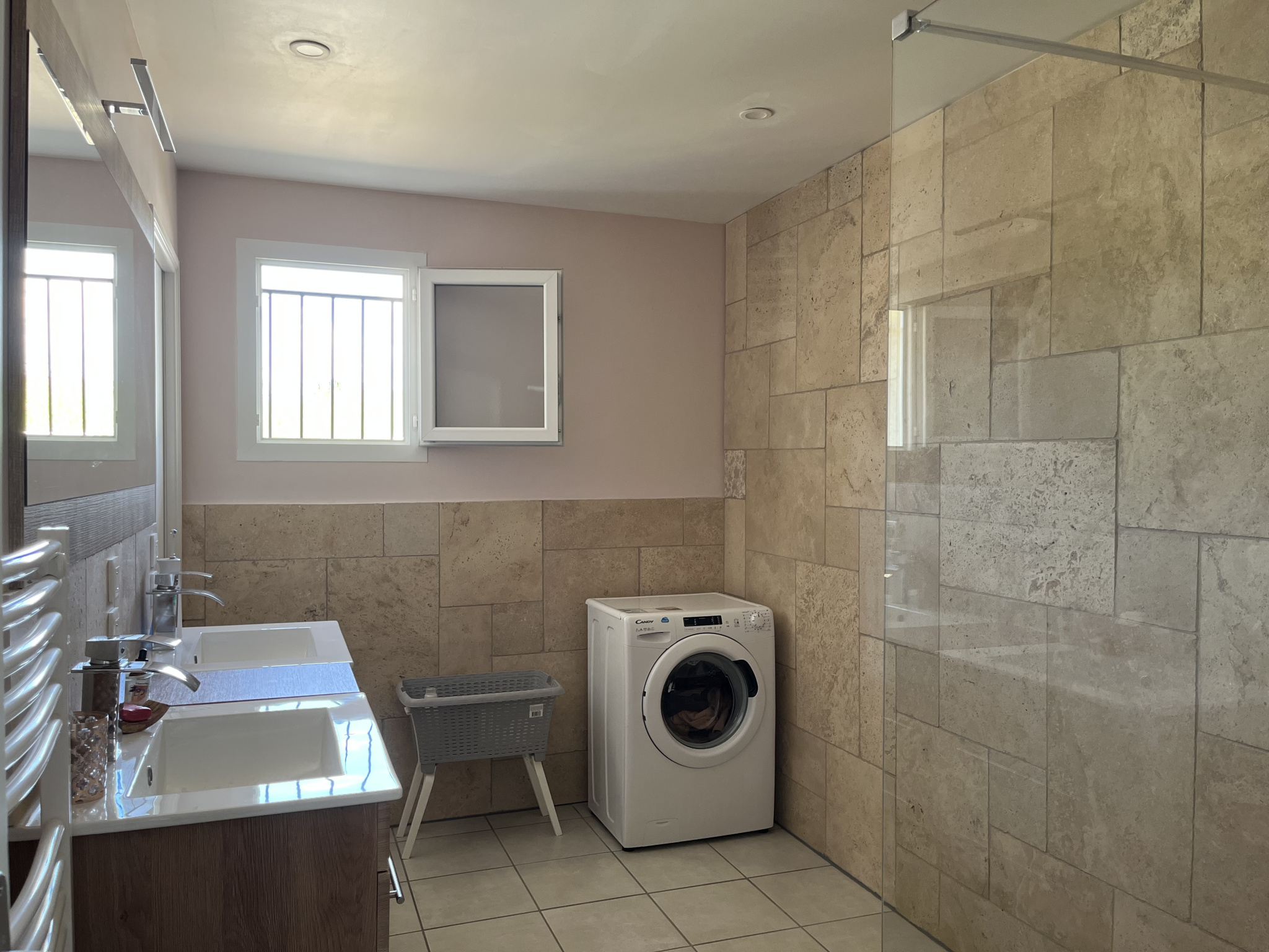 Deux ouvertures astucieusement créées permettent d'accéder à la SDE du couloir ou directement de la suite parentale. Une baignoire peut être installée facilement selon les besoins ou les envies.