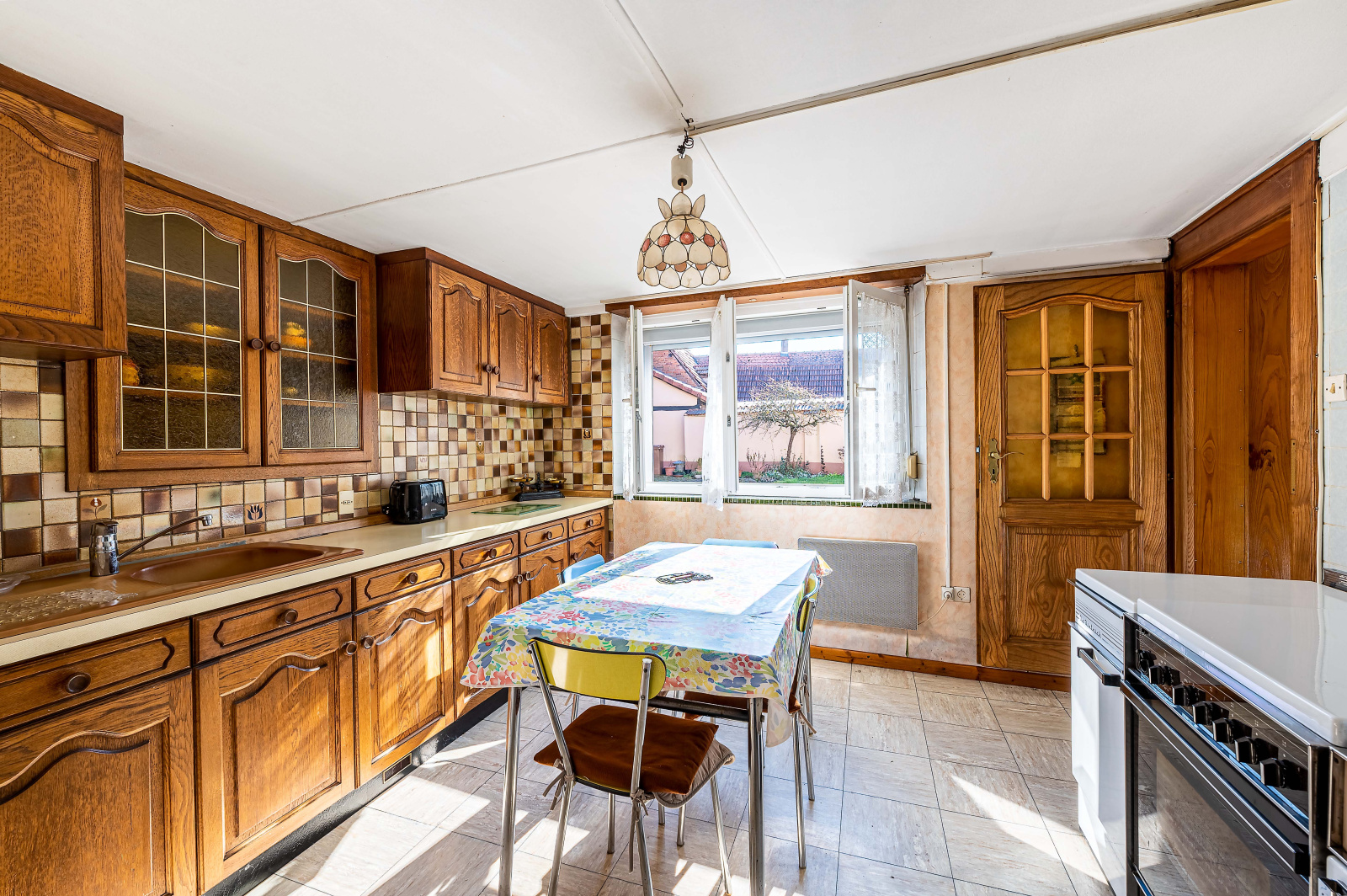 Maison Alsacienne avec travaux : 6 pièces réparties sur environ 133m2. Composée au rez-de-chaussée d'une entrée, d'une cuisine indépendante avec buanderie, d'un séjour avec pièce attenante le tout d'environ 27m2 et de sa salle d'eau avec WC d'environ 7m2 équipée de deux douches. A l'étage on dispose de 4 grandes chambres de 12 à 17 m2 desservies par un palier d'environ 13m2. Une salle d'eau vient s'ajouter à ce niveau. Des combles exploitables d'environ 52m2 viennent compléter ce bien.