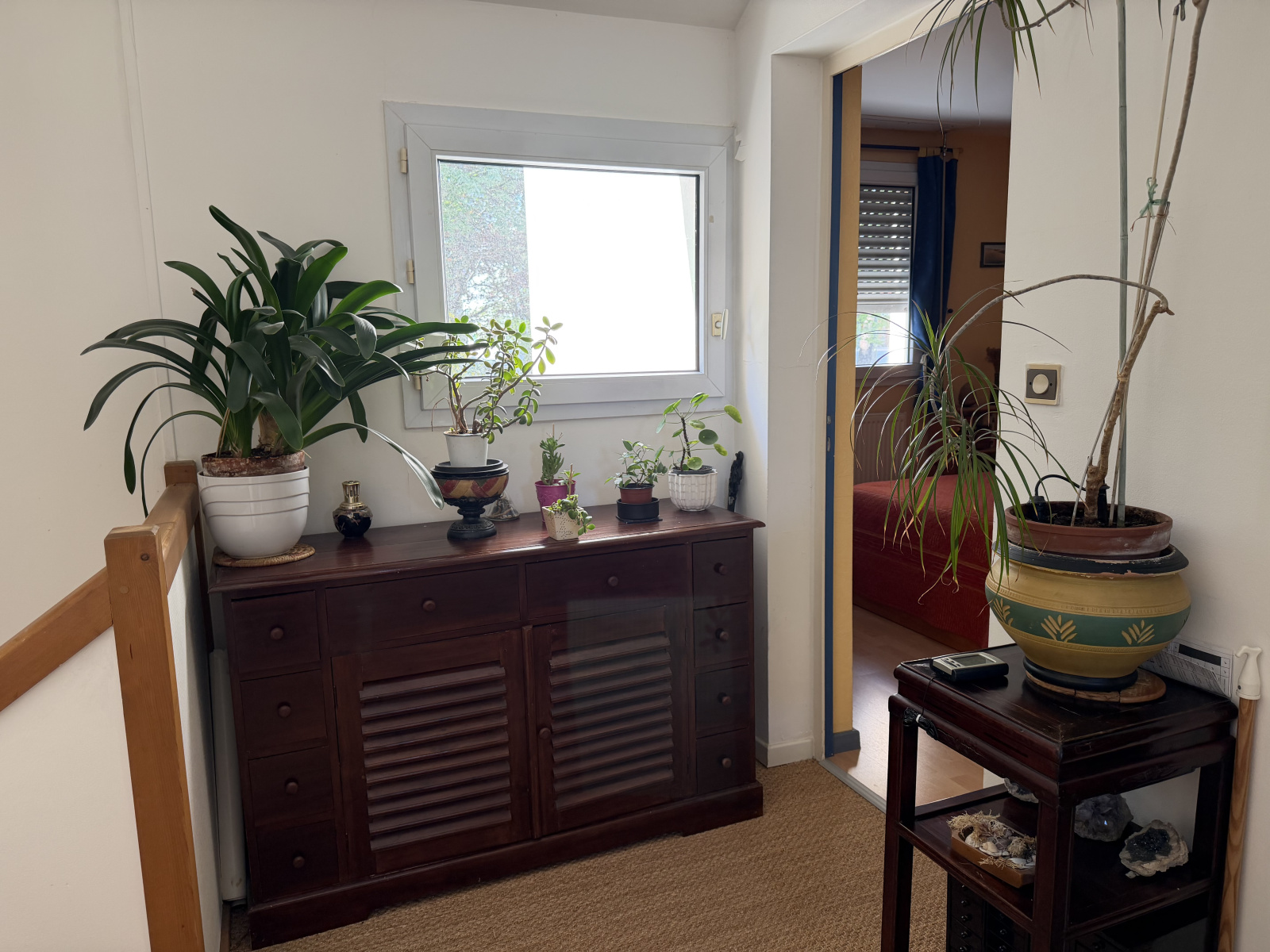 Ici tout peut encore être imaginé : une pièce supplémentaire prise sur l'espace du jardin ..., pourquoi pas agrandir le salon...., ou bien créer une suite de plein pied à partir de la chambre déjà présente.. .