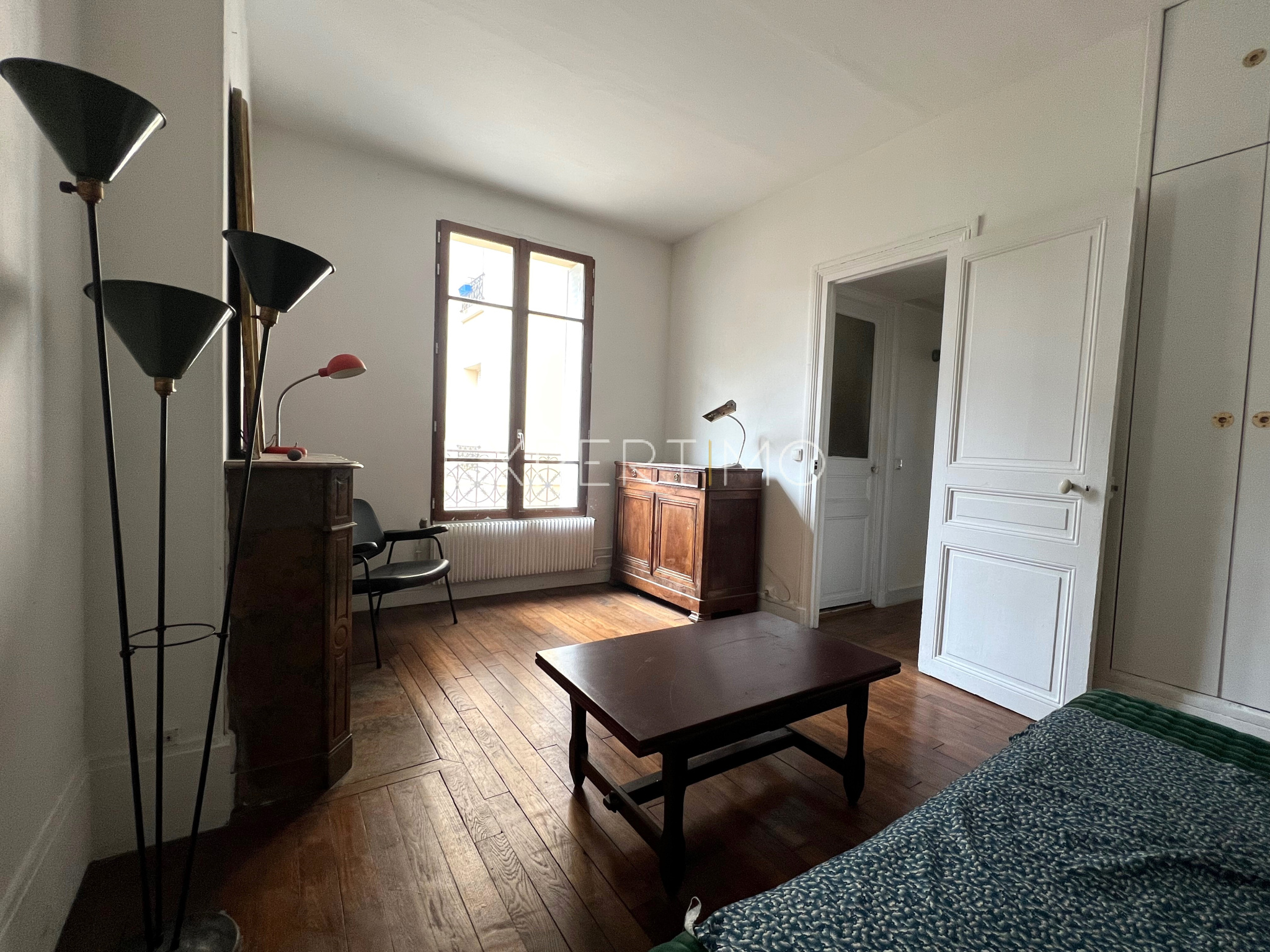 Si vous recherchez un cadre calme et authentique, vous serez particulièrement séduits par le cachet de l’ancien : parquet, cheminées, belle hauteur sous plafond. Agréable à vivre et sans perte de place, le séjour donne sur rue, tandis que les deux chambres de 13 m² et 8 m² ouvrent sur cour. La cuisine (5 m²) et la salle de bains (3 m²) sont à rafraîchir, wc séparé et rangements.