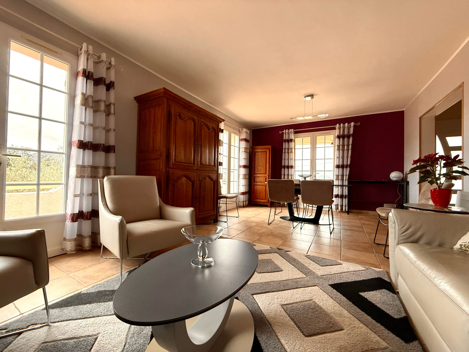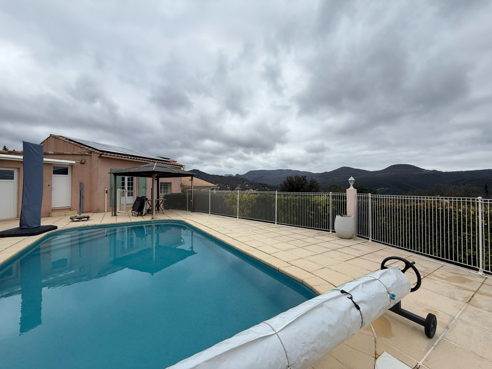 Nichée sur les hauteurs de Lodève, dans un cadre privilégié et préservé, découvrez cette villa contemporaine rénovée avec goût, construite en 1980 et entièrement métamorphosée ces dernières années.