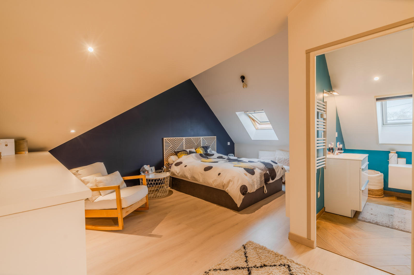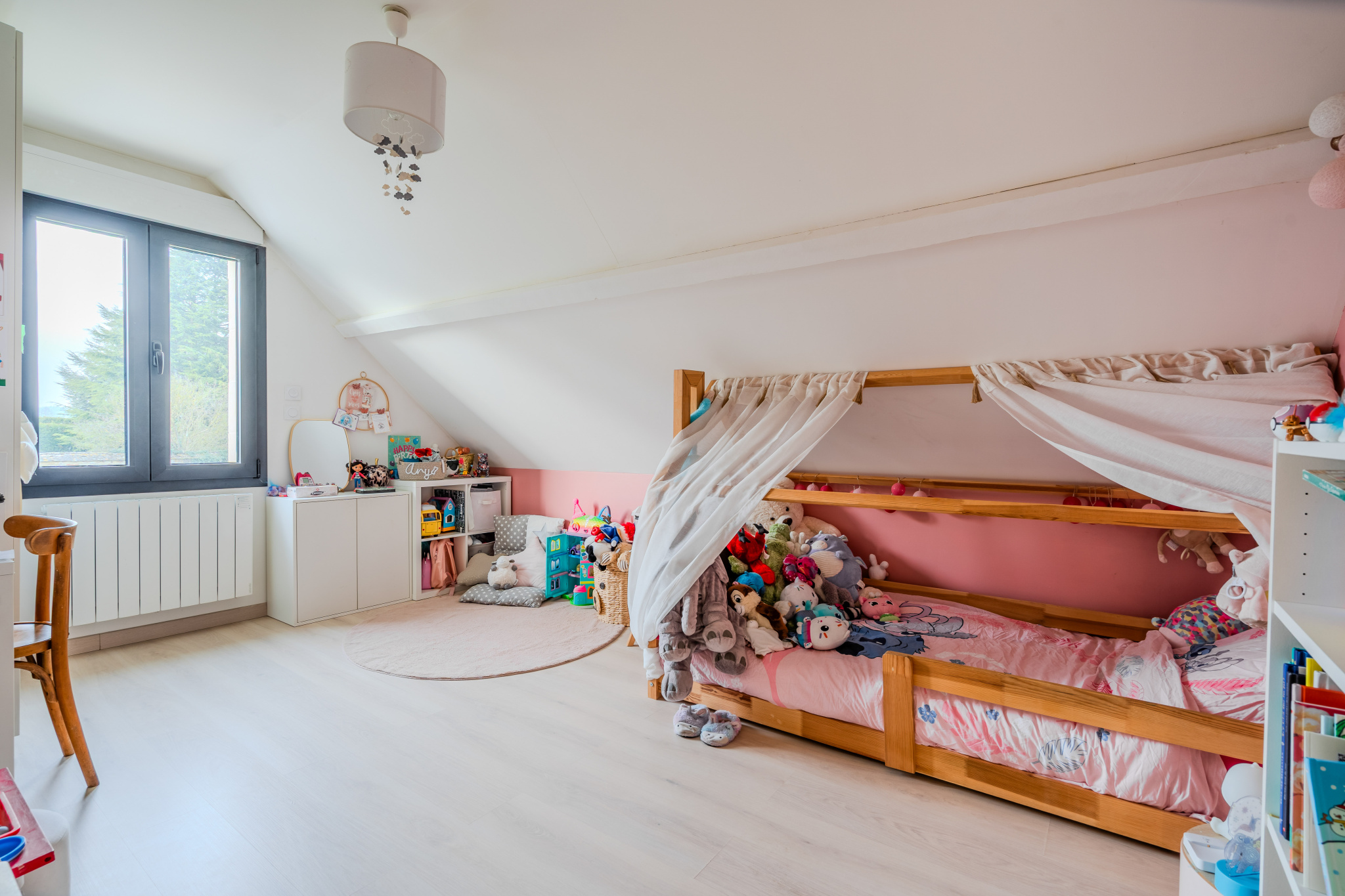 À l’étage, un palier avec placard dessert une seconde suite parentale avec salle d’eau et WC, ainsi que deux chambres spacieuses et lumineuses et dressing.