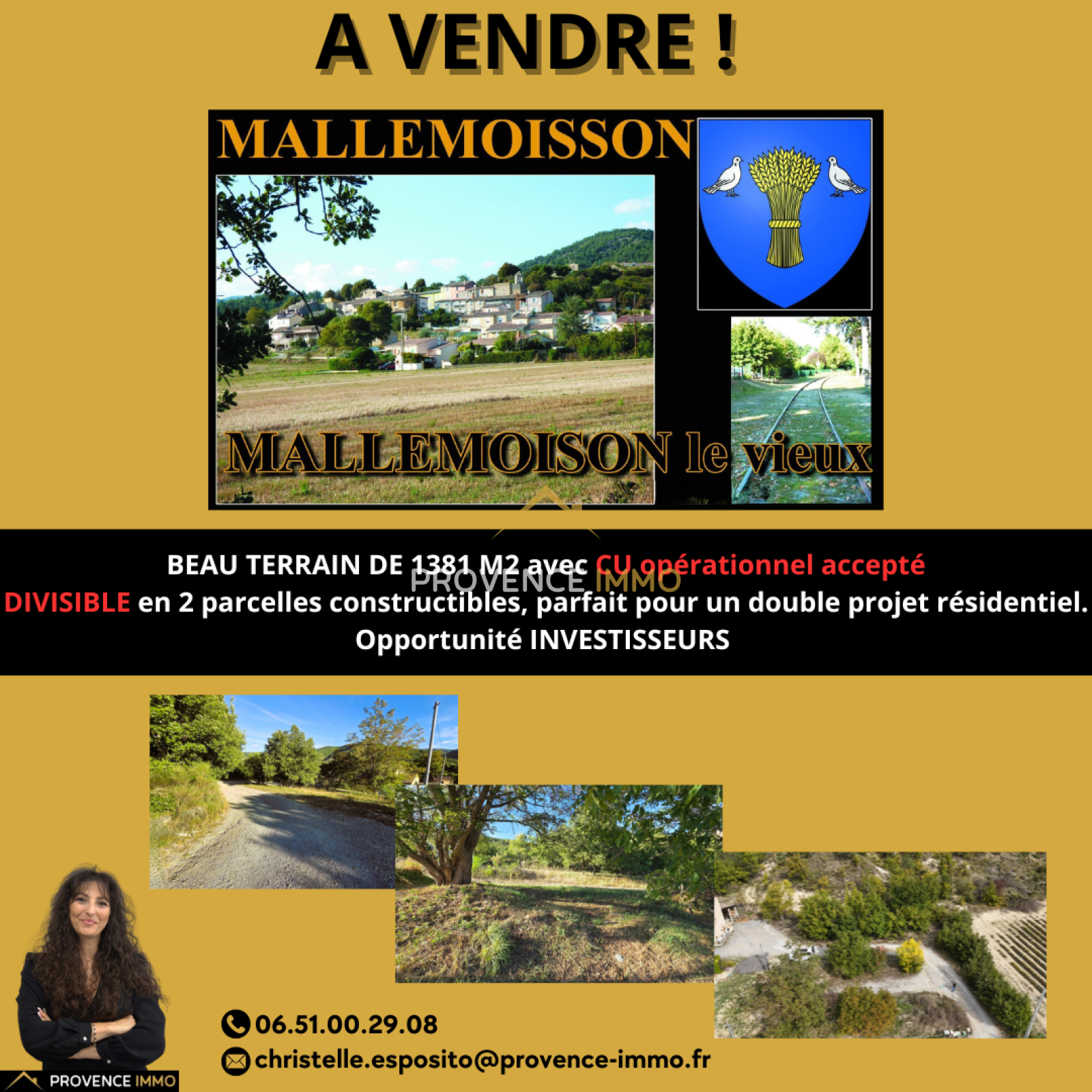 EXCLUSIVITÉ ! Terrain constructible de 1380 m2 à Mallemoisson (04) DIVISIBLE 2 constructions POSSIBLES. IDEAL INVESTISSEURS ou PROJET FAMILIAL