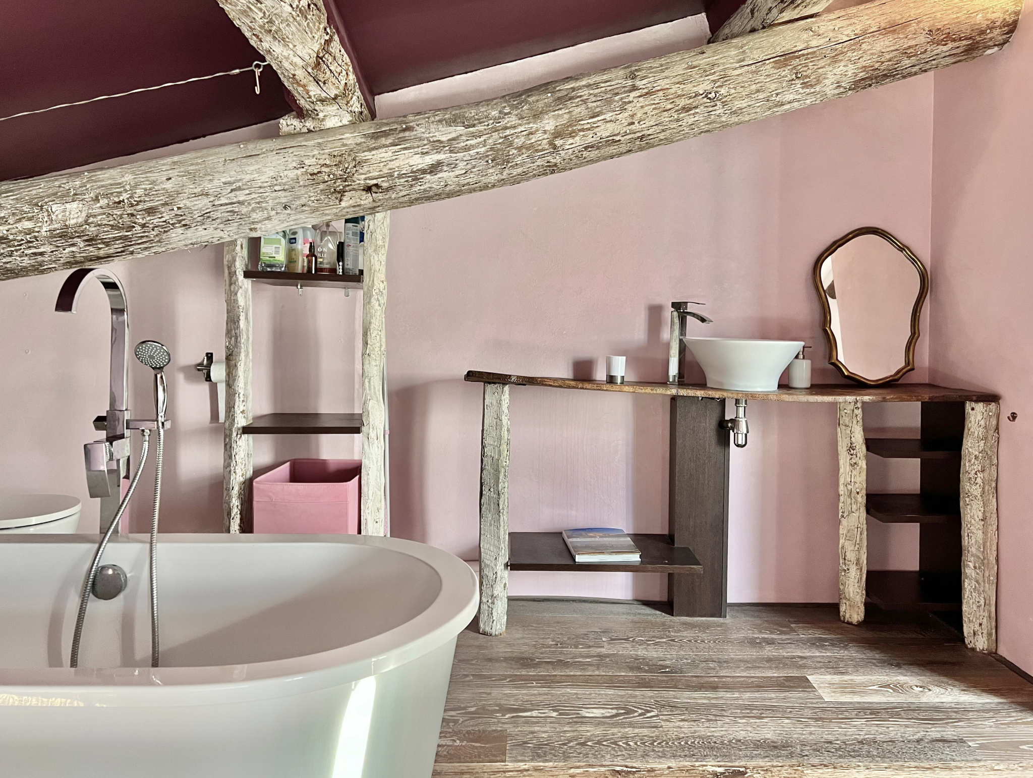 Le dernier niveau est véritablement une pièce coup de coeur. La grande suite parentale arbore le charme de l'ancien entre poutres anciennes et pierres apparentes. Vous profiterez d'une baignoire, d'une vasque et d'un WC. Et comme je vous l'ai promis... vous accédez à une terrasse qui domine les toits de Mallemort. Bénéficiant d'une vue époustouflante sur les Alpilles et le Luberon, vous profiterez en toute quiétude du plus beau des couchers de soleil !