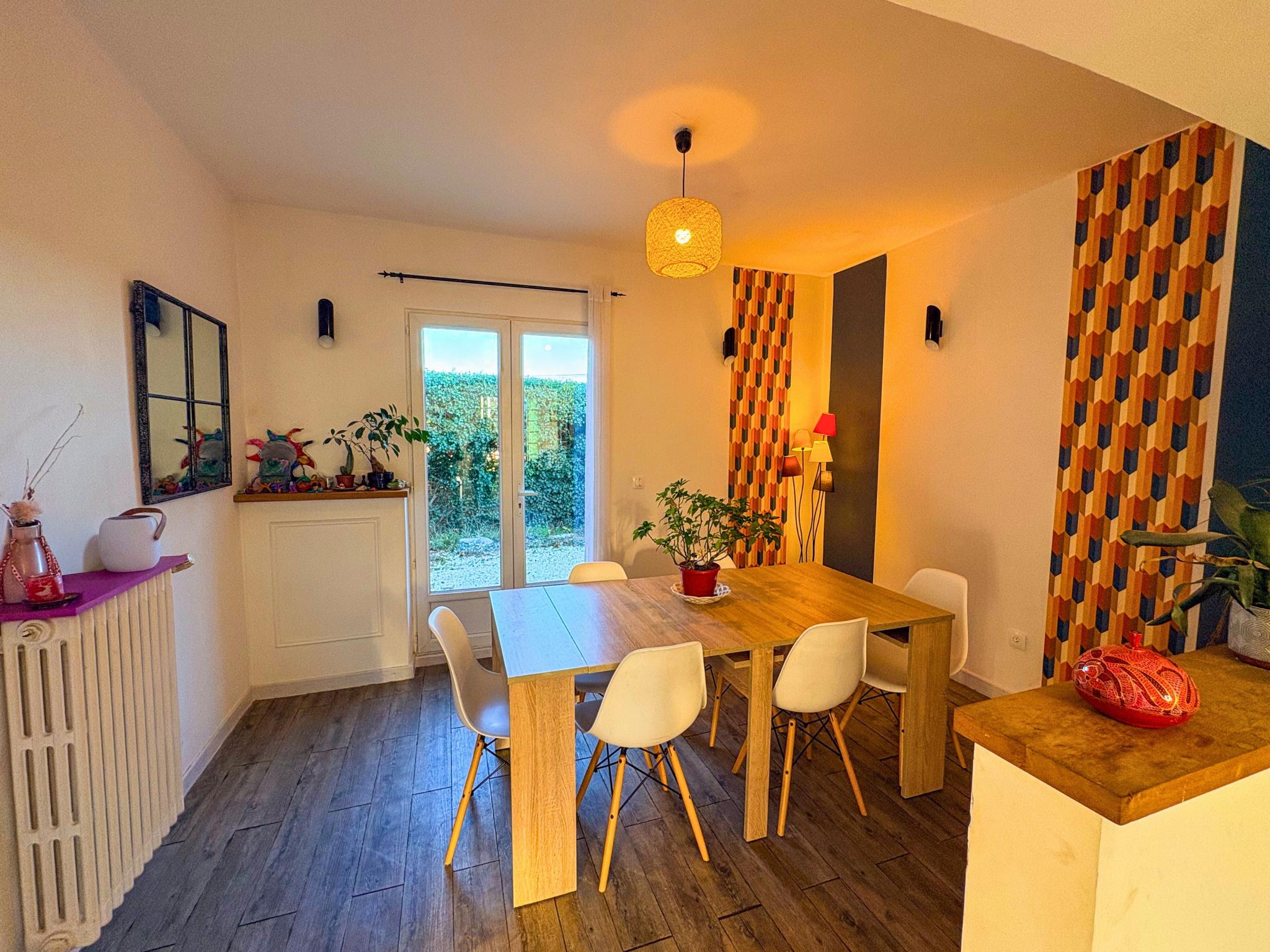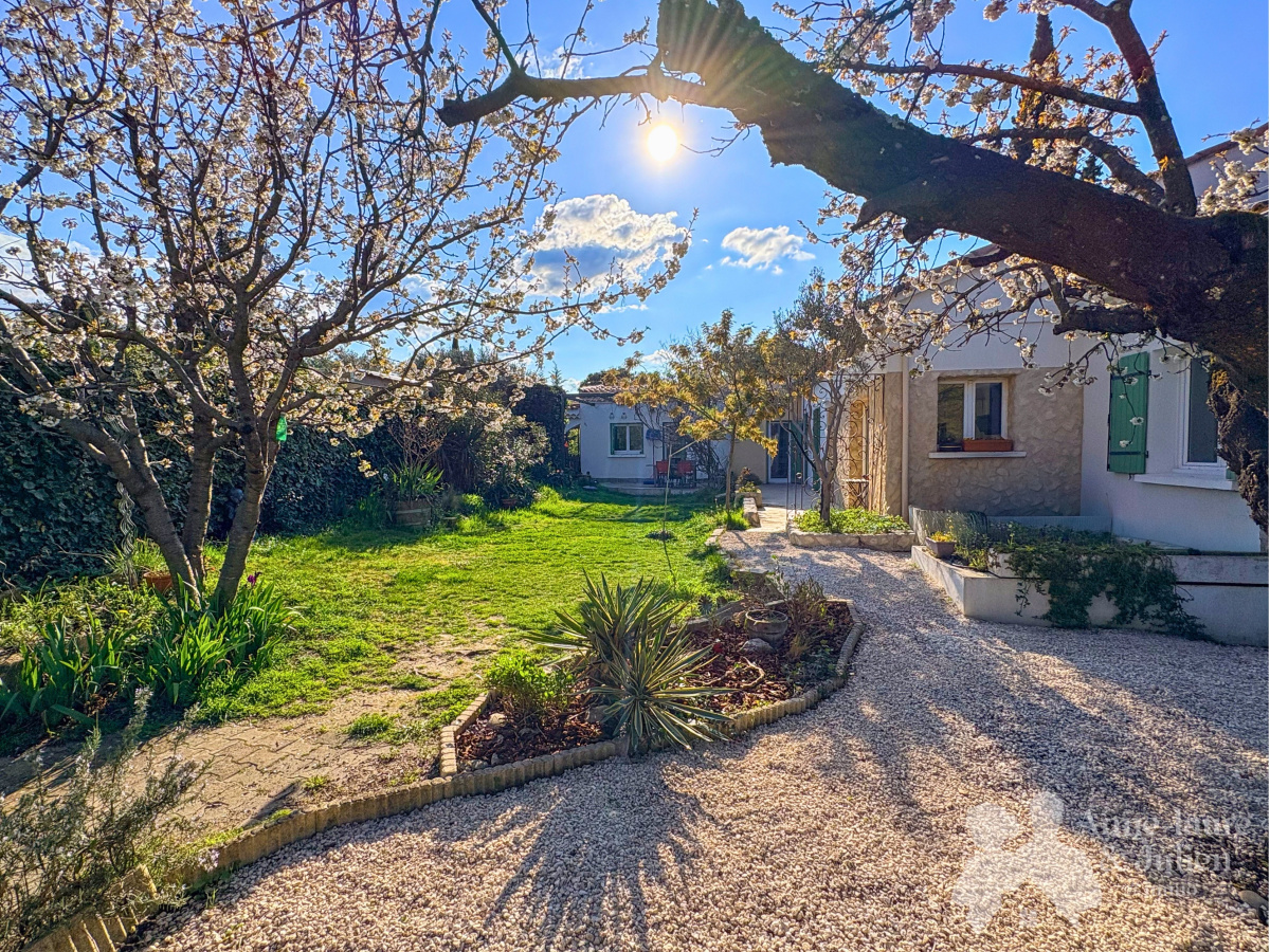 A l'extèrieur vous pourrez profiter du jardin joliment arboré : cerisiers, mimosas... Une agréable terrasse pour profiter de moments de partage en famille ou entre amis.