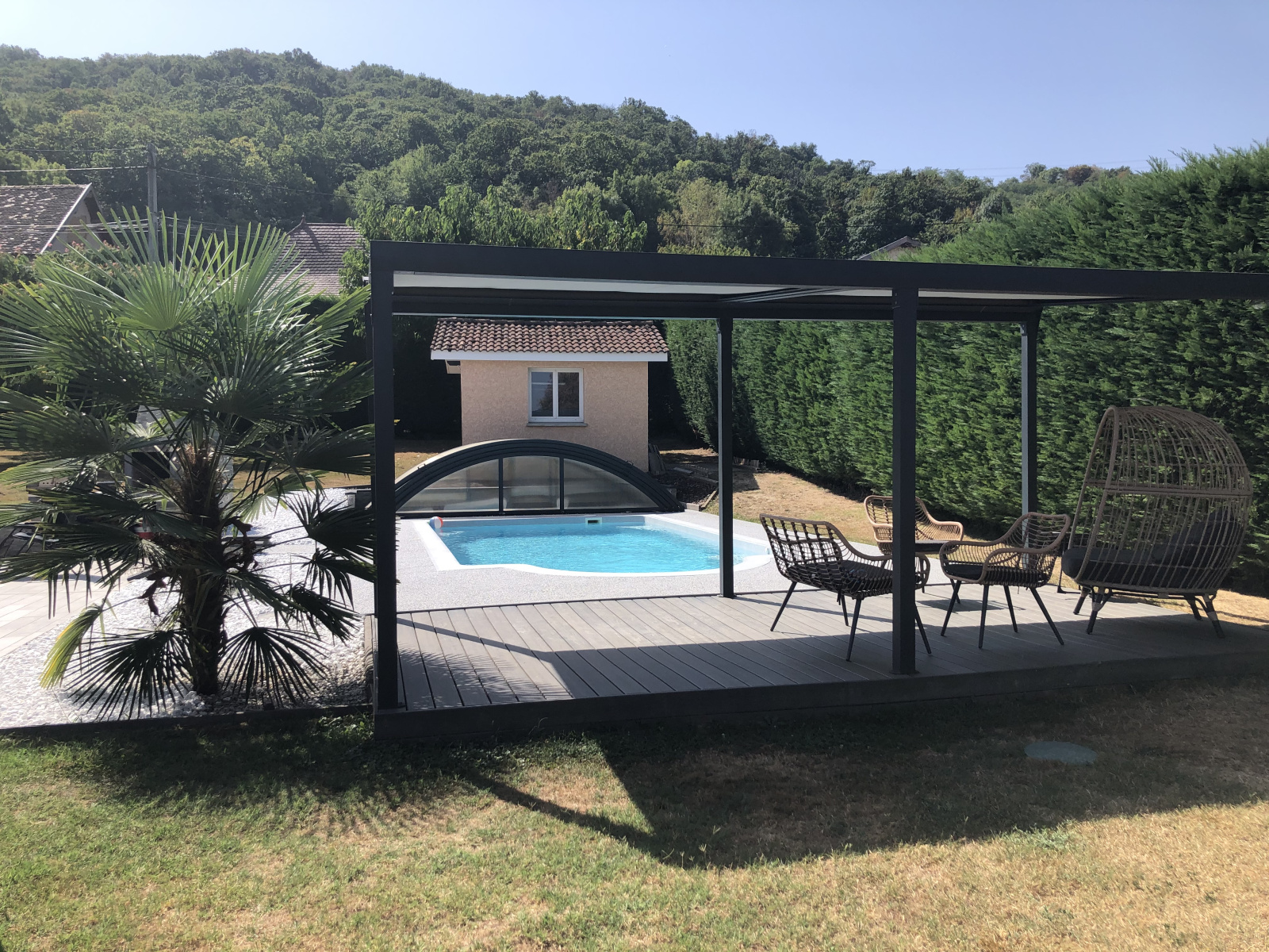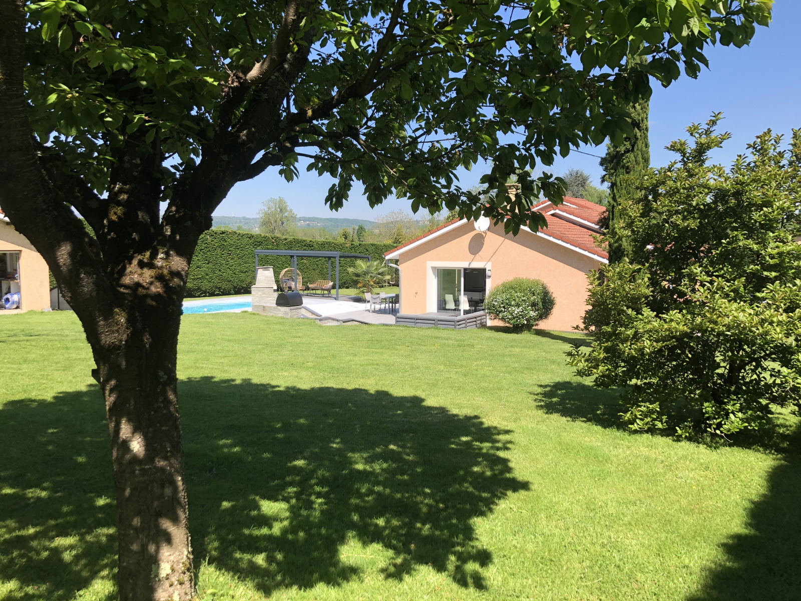 Sans aucun vis à vis, entourée par trois terrasses aménagées qui donnent accès à plusieurs espaces de détente (une piscine couverte et son jacuzzi, un terrain de pétanque, un barbecue en pierre et une grande aire de jeux) cette maison vous permet de profiter du soleil ou de la fraîcheur toute l'année.