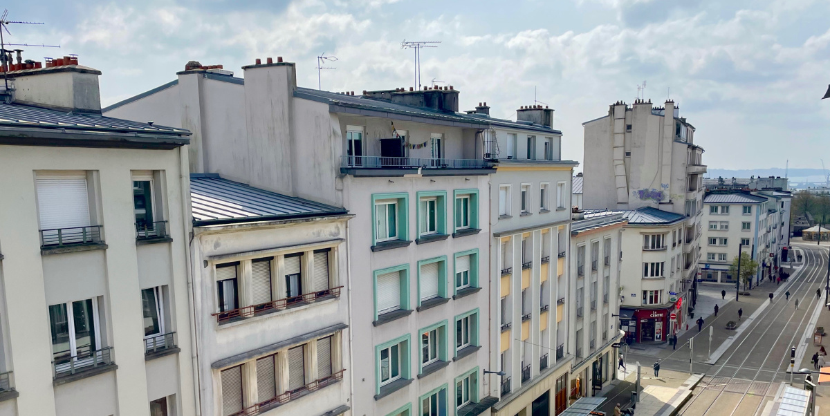 Yanna Fournier Immobilier EXPERTIMO vous propose, Au coeur du Centre ville de Brest, dans l'hyper centre, Bel Appartement de 112 m2, lumineux, à 400 m de la place de la Liberté, quatrième et dernier étage, seul à l'étage, emplacement idéal, pour les amoureux du centre ville ou pour un investisseur. Immeuble des années 1950, appartement offrant de beaux volumes, avec grand potentiel de rénovation. La toiture ZINC de l'immeuble à été totalement refaite en 2012. Il se compose d’un grand salon séjour, de deux belles chambres, avec possibilité d'une 3eme chambre, cuisine, salle de bains. Chauffage individuel. Collocation possible. Entrée de l’immeuble sécurisée. Toutes les commodités à proximité, Tram, bus, Gare TGV… toiture récente sous garantie décénale, Proximité location parking au bas de l'immeuble. À visiter absolument.