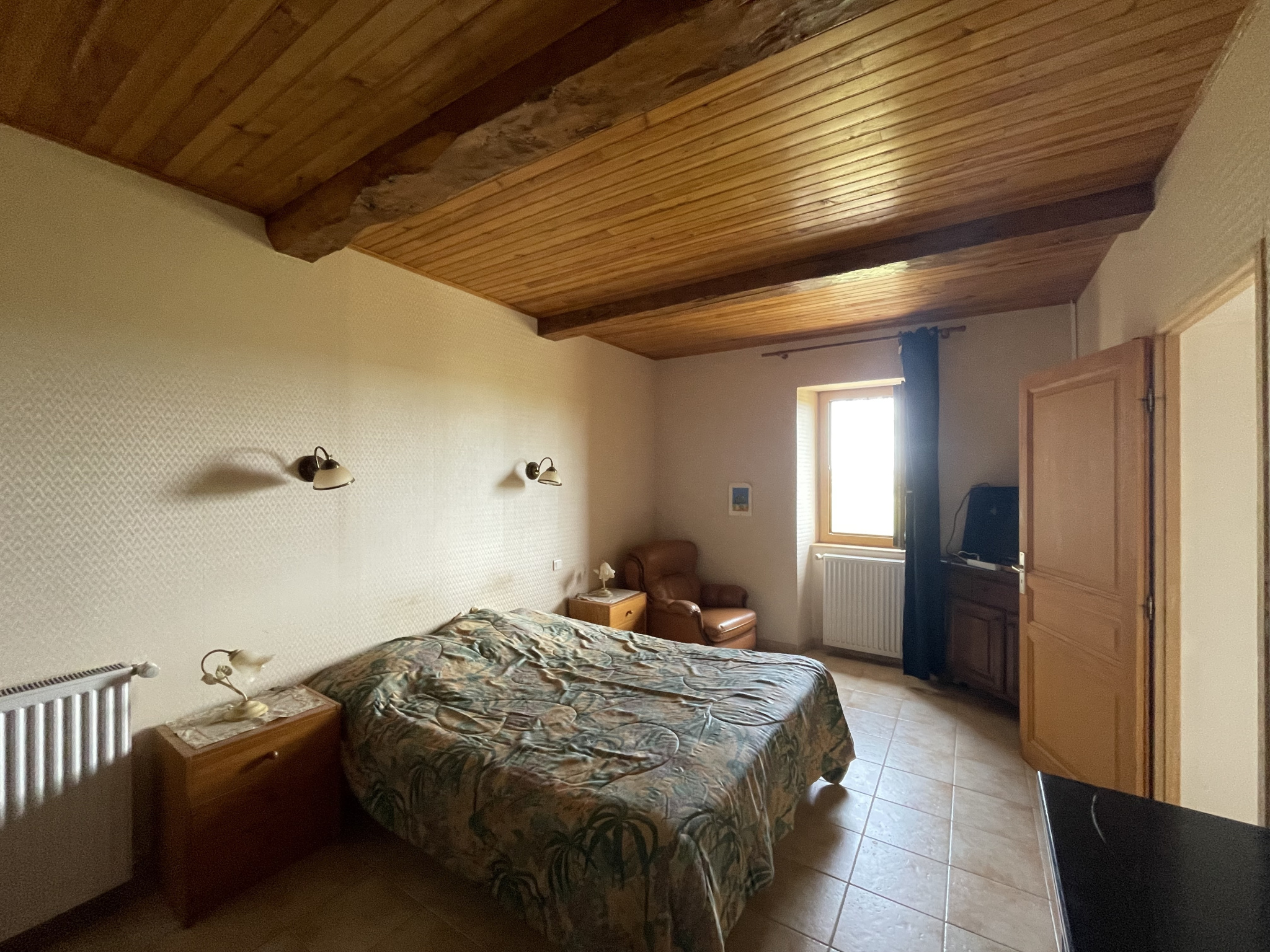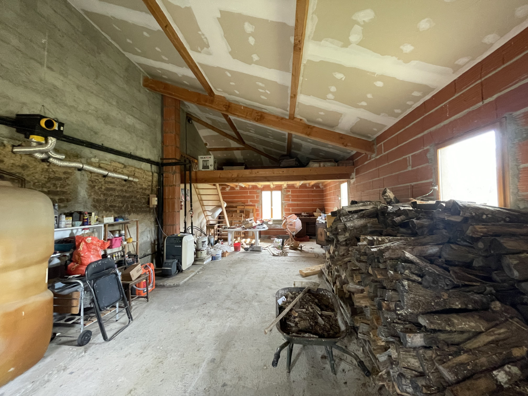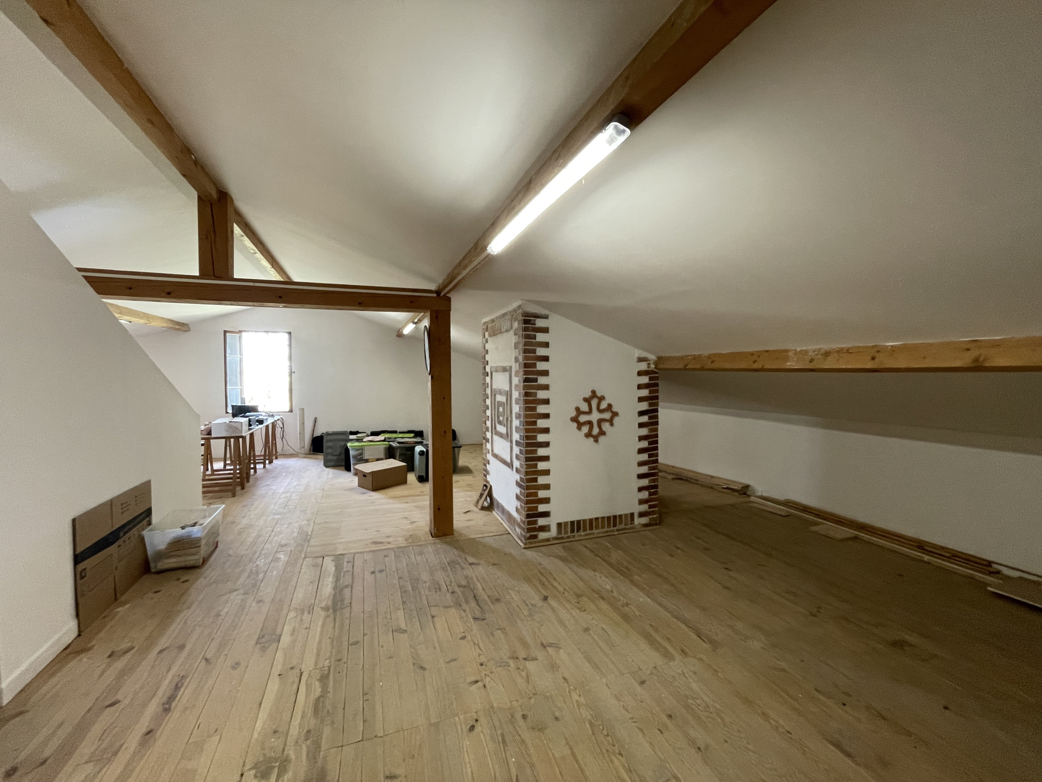 A l'étage, et non considéré comme "habitable" car pas chauffé, un plateau rénové de 71m2 avec toilettes qui peut être destiné à la création d'autres chambres ou d'un espace bureau ou encore d'une salle détente/salle de jeux. Elle est équipée de menuiseries en double vitrage, d'un chauffage central au fioul et d'une fosse septique.
