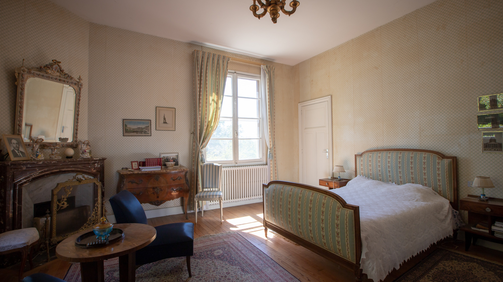 + placard - porte fenêtre accès terrasse - accès salle de bain - cheminée d'angle