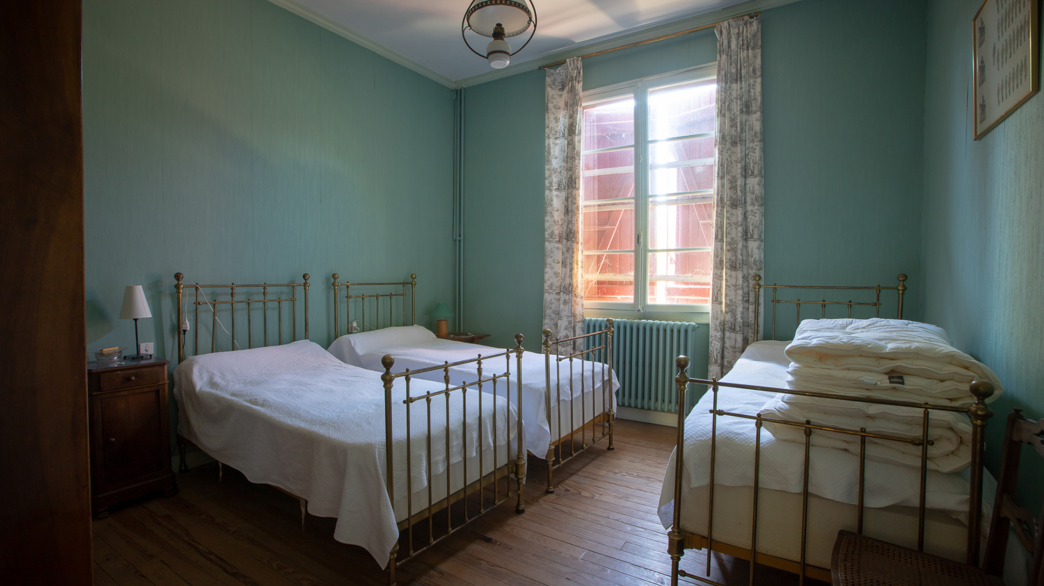 porte fenêtre accès jardin - radiateur fonte - carreaux ciment