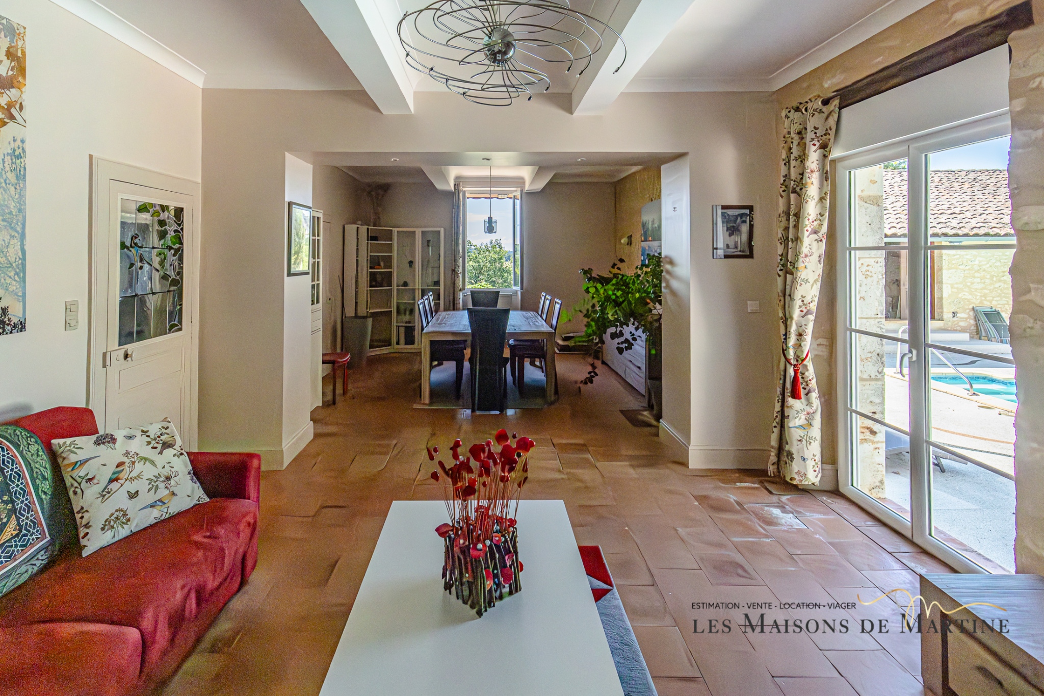 tomettes - mur en pierre - ouvert sur salle à manger - accès terrasse/piscine