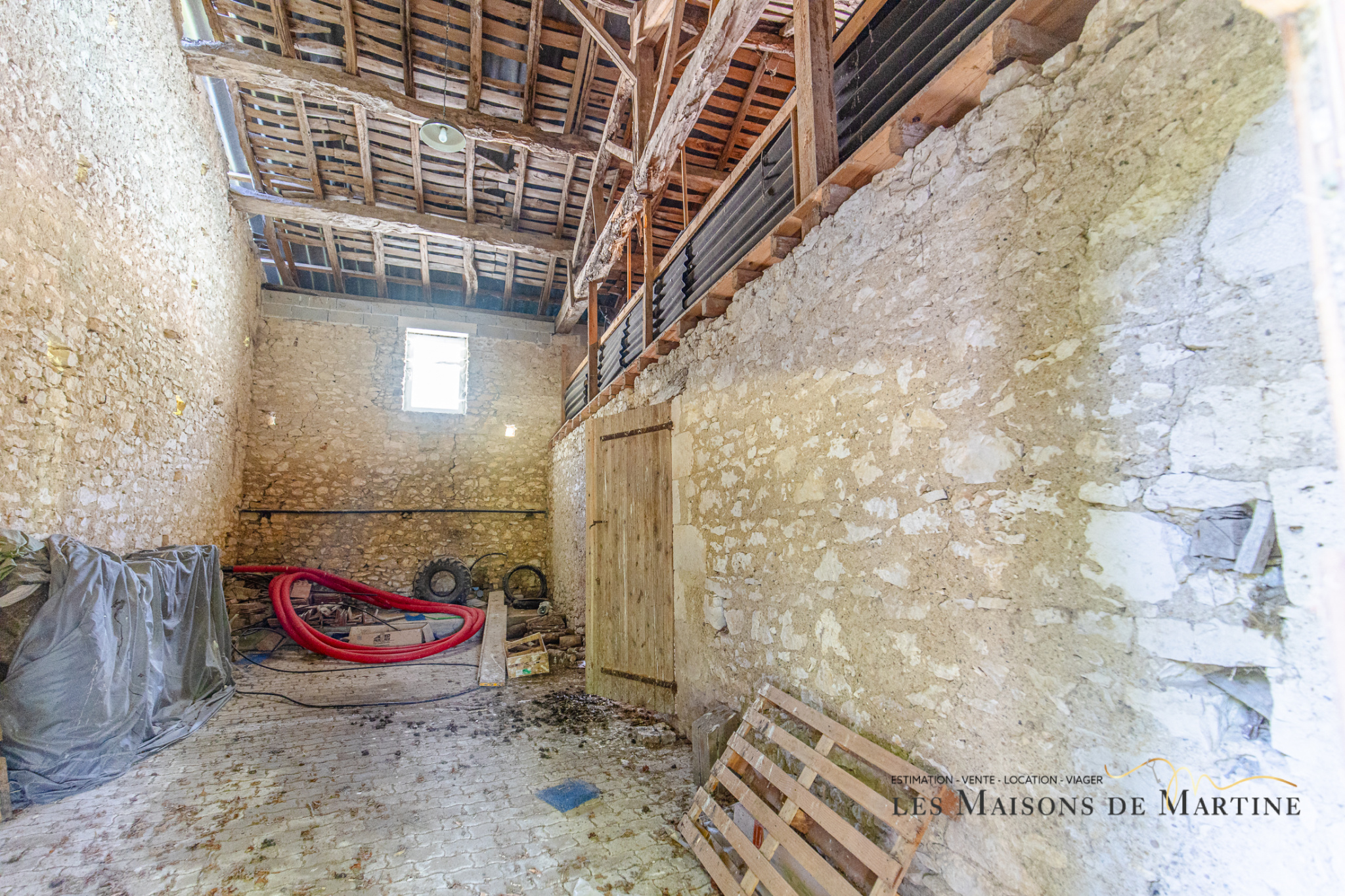 grange - murs en pierres - grande poutre bois - niveau jardin