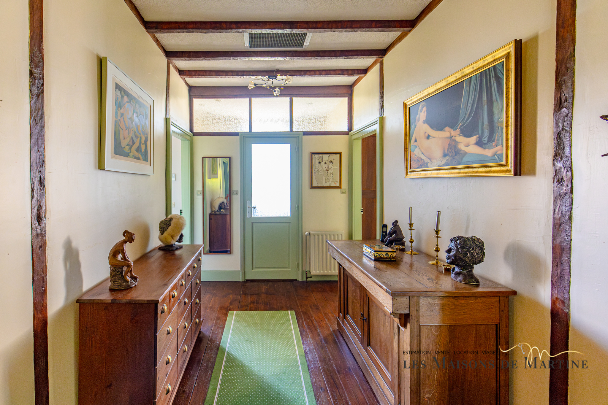colombages - carrelage imitation tomettes - meublée/équipée - cheminée insert