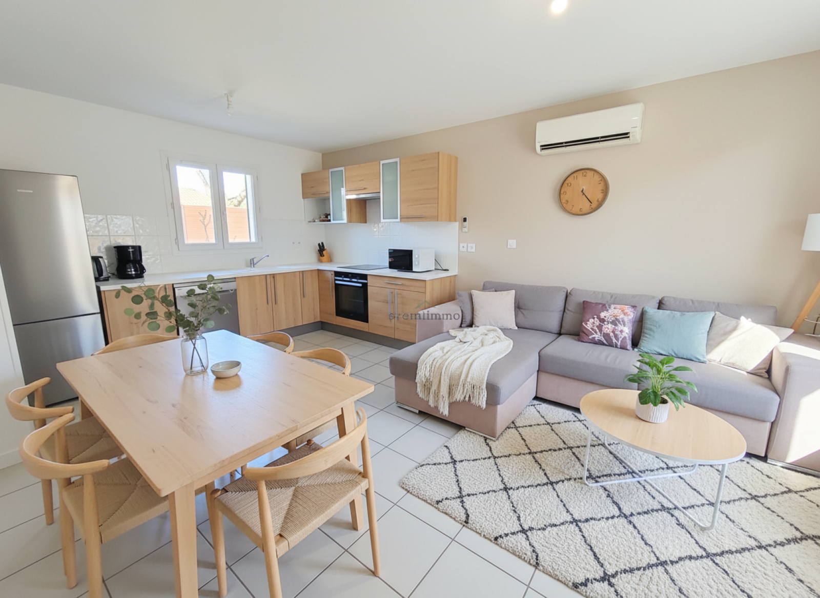Dés l'entrée coté Sud vous serez séduit par une belle pièce de vie de 26m2 baignée de lumière avec cuisine entièrement équipée (électroménager 2023 et 2024) ouverte sur le séjour.