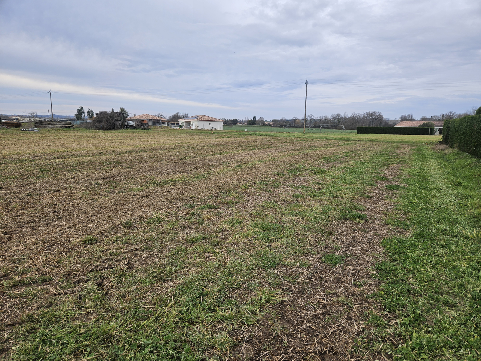 Grand terrain plat constructible de 1950 m² environ incluant le chemin d'accès situé à moins de 15 minutes de Caussade et à 5 minutes de Nègrepelisse - viabilisation facilitée car les réseaux sont en bordure du terrain - système d'assainissement autonome à prévoir - étude de sol GI en cours