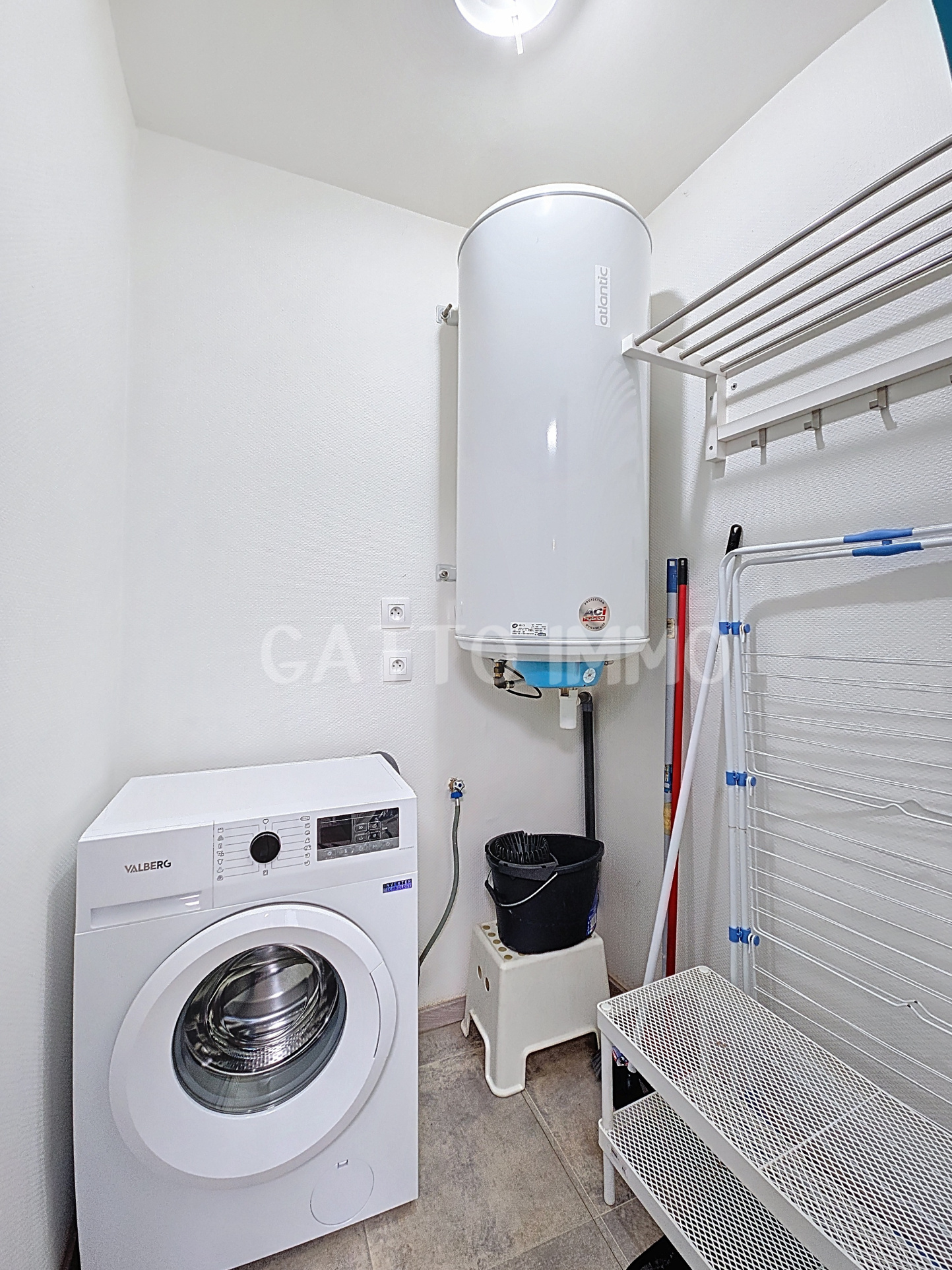 Situé dans une petite copropriété de 13 lots, l'appartement est composé d'un grand salon-séjour de plus de 21m², d'une SDD avec WC, d'une buanderie, d'une cuisine équipée et d'une chambre.