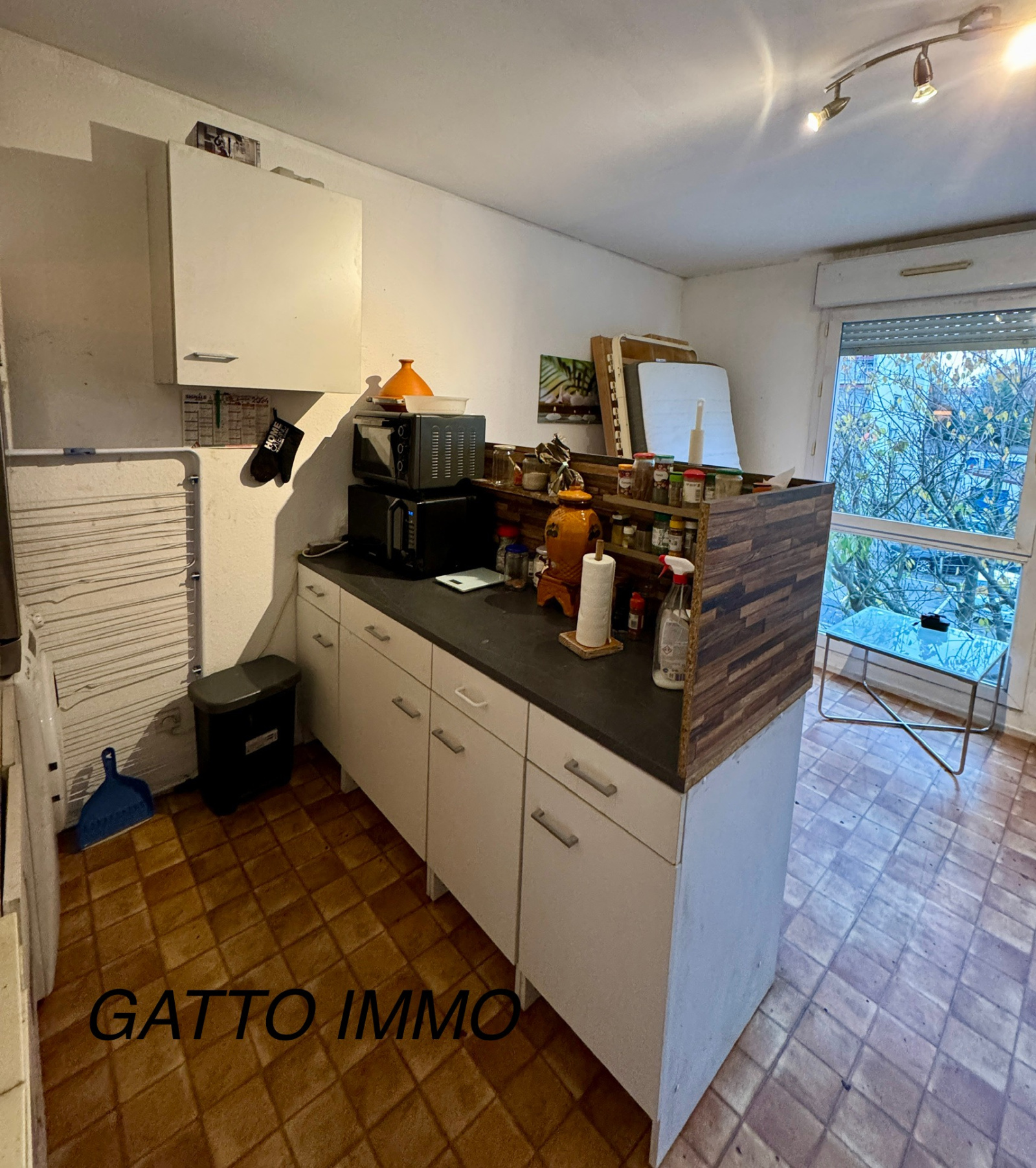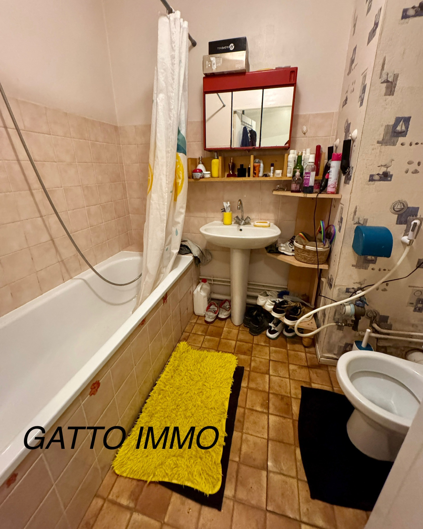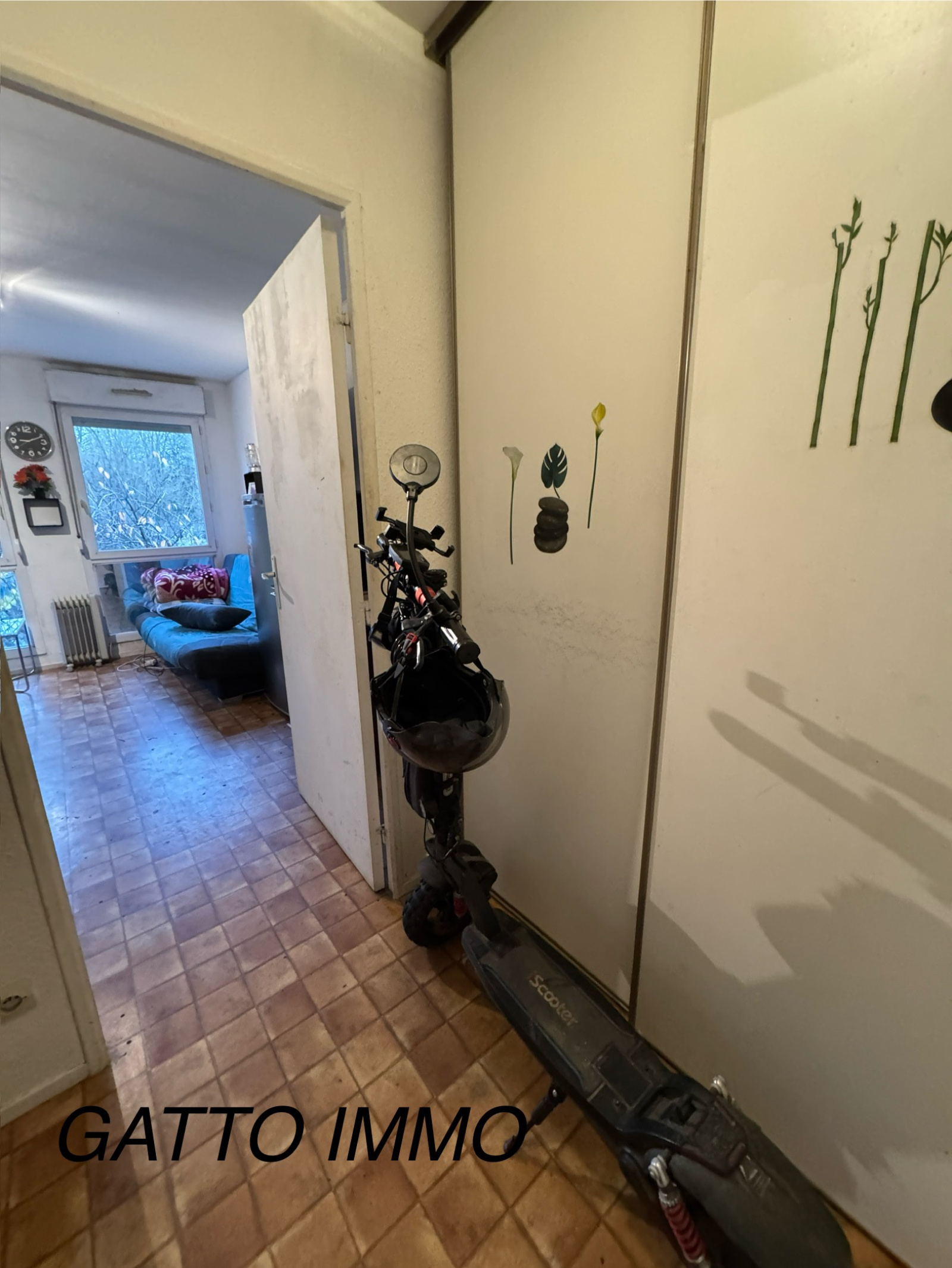 Ce logement au 1er étage offre une entrée avec placard, une pièce de vie ouverte sur une kitchenette et une salle de bain avec WC.