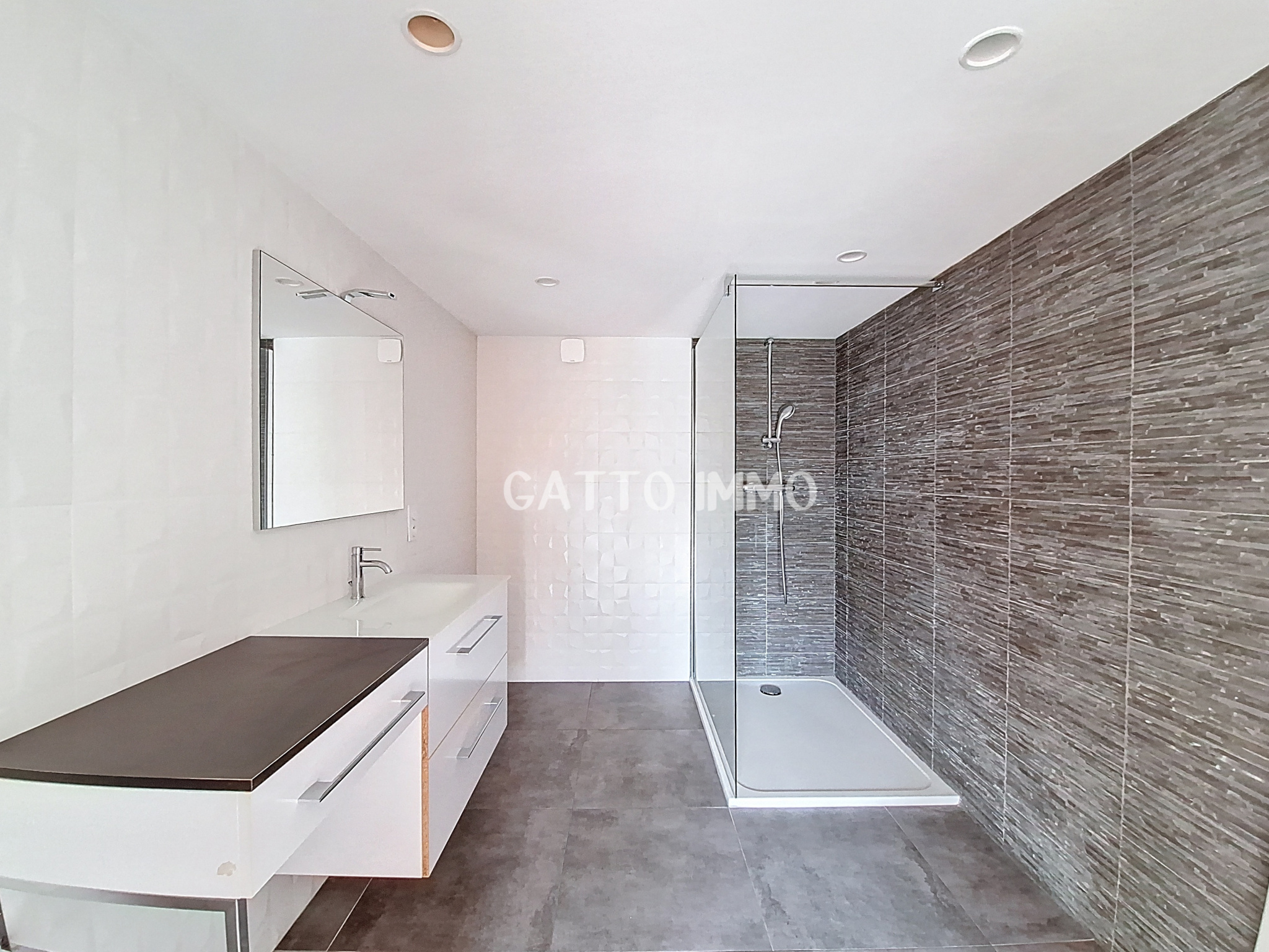 Au rez-de-chaussée : Une belle entrée donne sur un coin bureau (pouvant être transformée en 4ème chambre), un WC indépendant, un accès au garage et buanderie, une superbe piéce de vie de 60m² avec cheminée à bois moderne avec de belles hauteurs sous plafond effet cathédrale, un espace bar, une cuisine haut de gamme totalement équipée, le tout donnant accés à une grande terrasse avec vue sur le jardin et sa piscine chauffée de 8m x 4m,