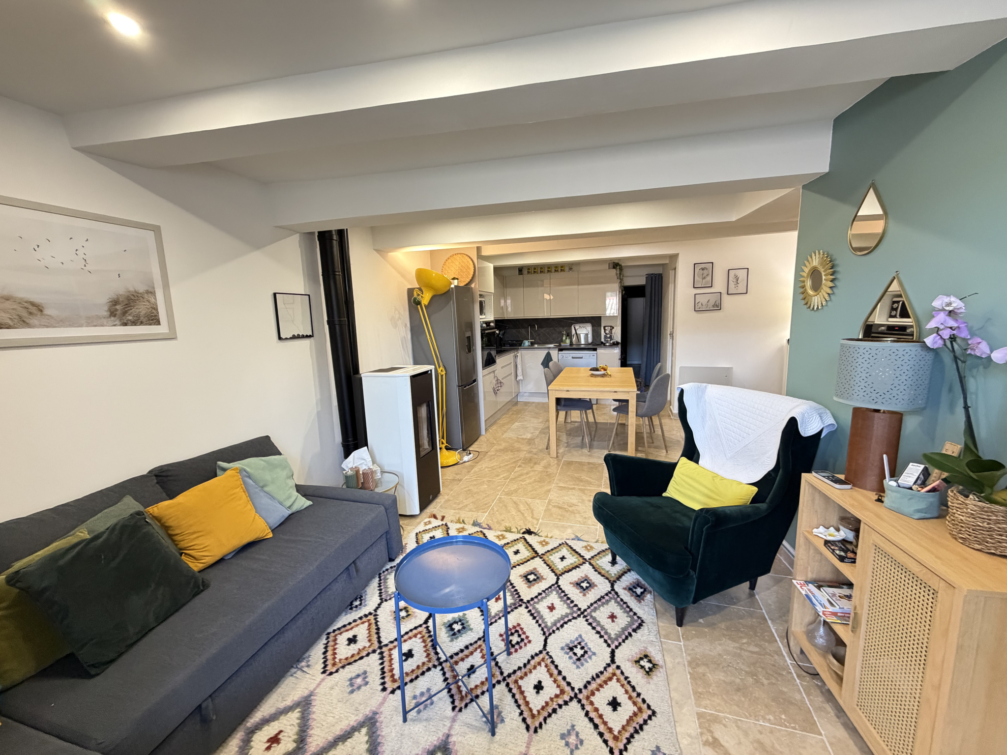 Dès l’entrée, vous serez séduit par une pièce de vie chaleureuse et cocooning, baignée de convivialité, avec cuisine ouverte idéale pour partager des moments en famille ou entre amis. Un poêle à granulés vient compléter cet espace et apporte un confort chaleureux durant l’hiver. La maison est équipée de double vitrage PVC, garantissant une bonne isolation. Sur ce même niveau, vous trouverez également un cellier ainsi qu’une arrière-cuisine, très pratiques pour le rangement et l’organisation du quotidien.
