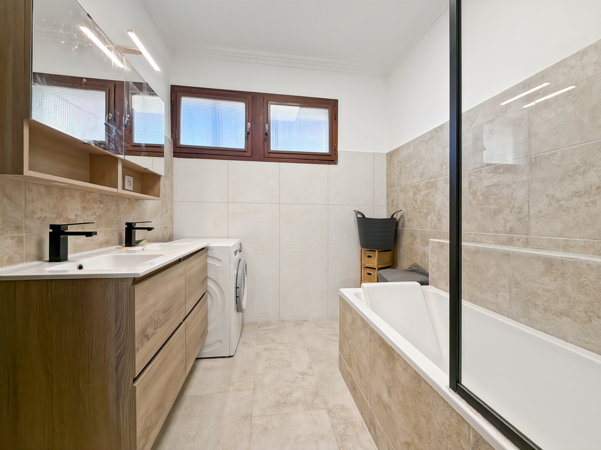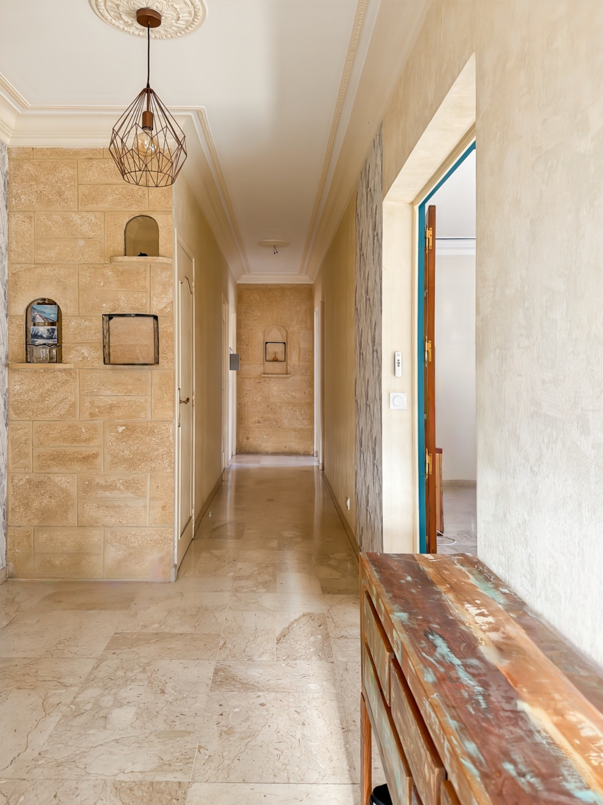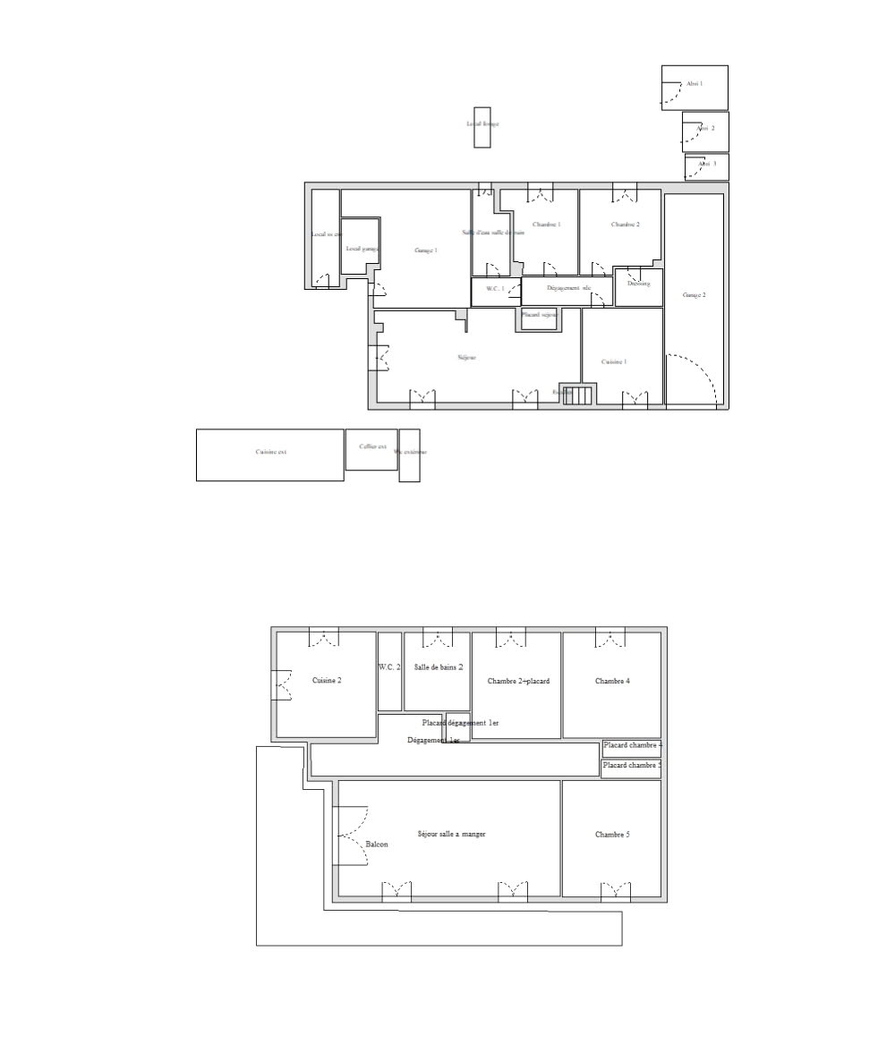 Elle se compose actuellement de deux appartements rénovés, dont un de plain-pied, comprenant au total cinq chambres, deux salons et deux cuisines récentes. Cette configuration est idéale pour un projet familial intergénérationnel, un investissement locatif ou toute autre opportunité. Grâce à ses deux entrées indépendantes, le bien peut également être facilement réuni en une seule et grande maison familiale.