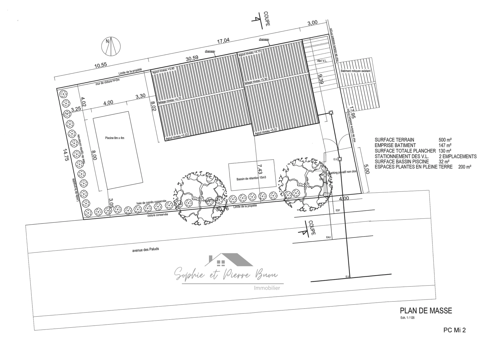 Ce terrain est proposé avec un permis de construire accordé et purgé de tous recours pour une maison de 130 m² avec piscine.