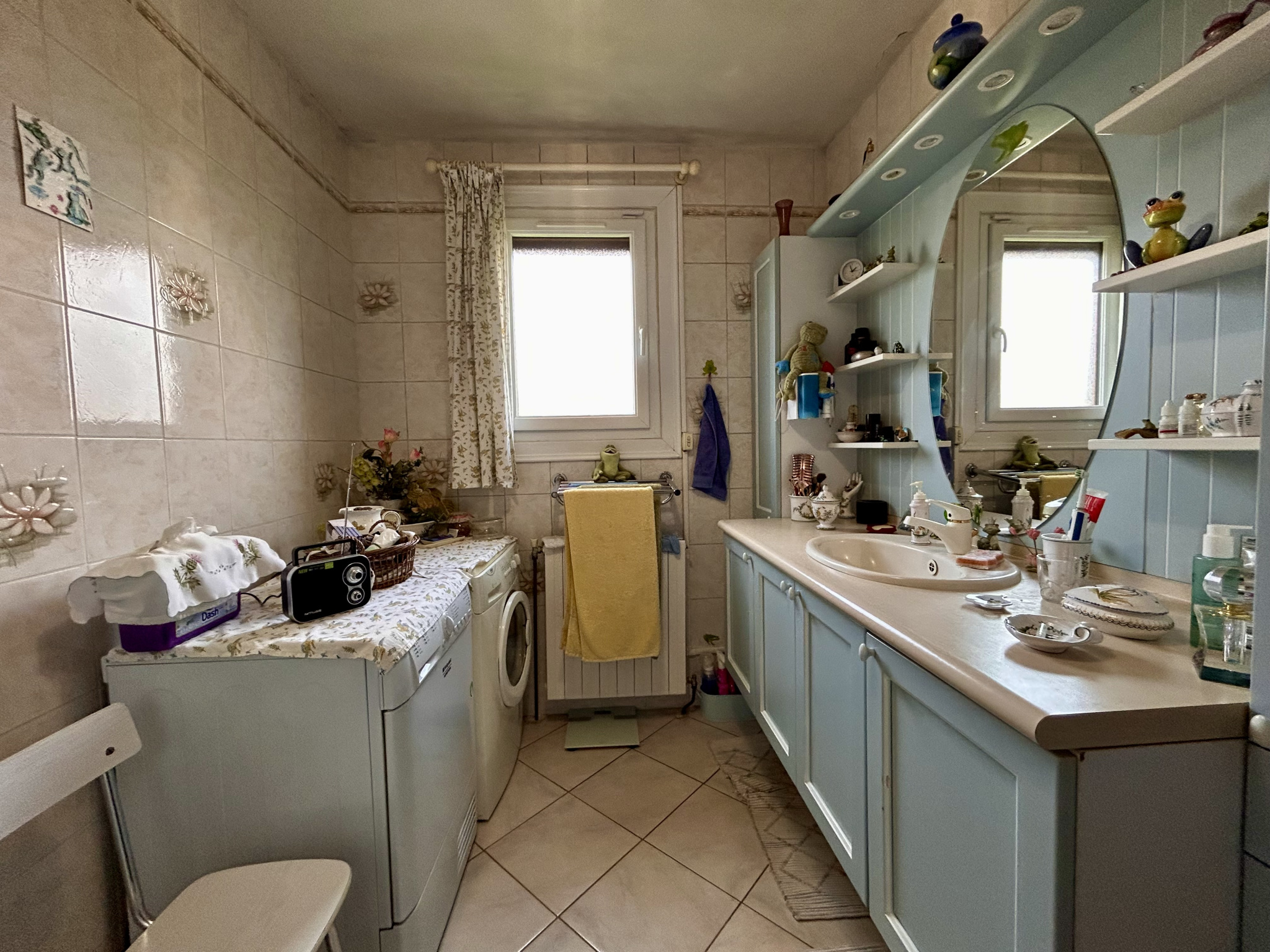 Ce pavillon vous offre également une veranda de 33 m² et un grand garage pouvant accueillir 3 à 4 voitures Fenêtres PVC double vitrage au rez de chaussée et bois simple vitrage à l'étage, volets roulants électriques et manuels, pompe à chaleur (2020) , ballon d'eau chaude (neuf), TAE, le tout sur un terrain de 1821 m².