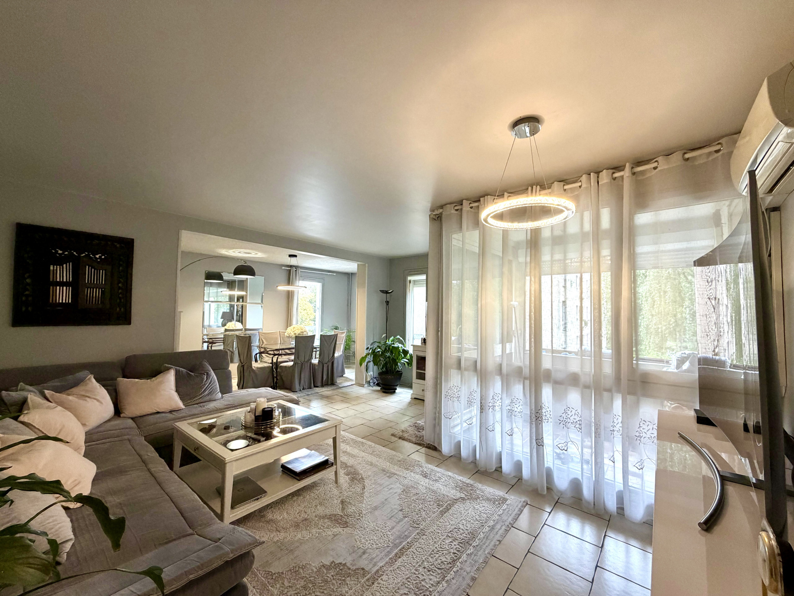 L'intérieur est en très bon état et lumineux (SUD) avec : une entrée, un grand séjour double de 32m2 (que l'on peut fermer pour refaire la 3e chambre), une cuisine séparée équipée (restera : four, plaque, hotte), balcon de 4m2, 2 chambres dont une avec placards intégrés, une salle de bain avec espace pour un lave-linge, une salle d’eau avec douche, wc séparés, un dressing.