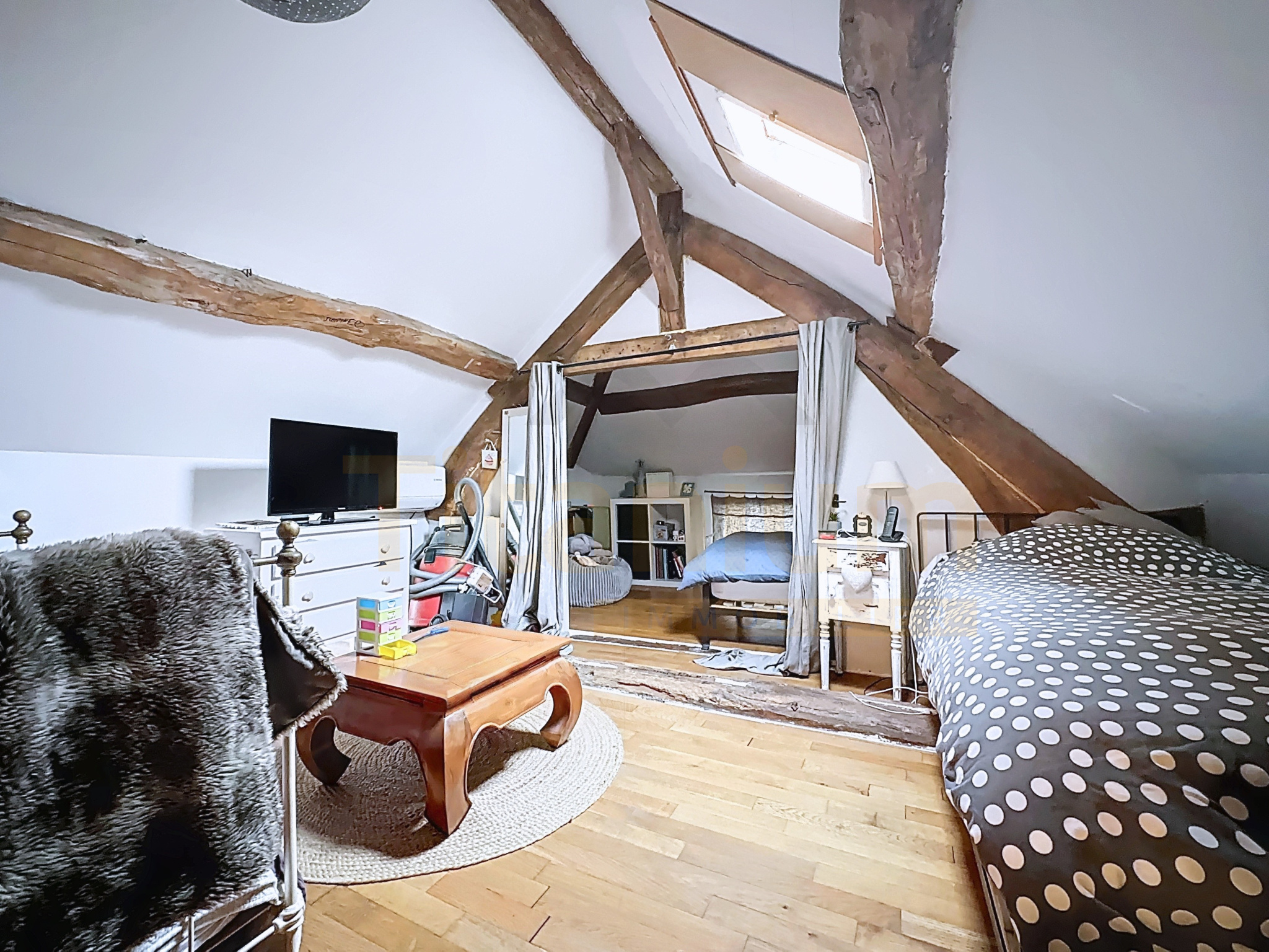 Le second espace propose au RDC un salon, une chambre, une salle d’eau et des WC indépendants. À l’étage, vous trouverez une chambre supplémentaire.
