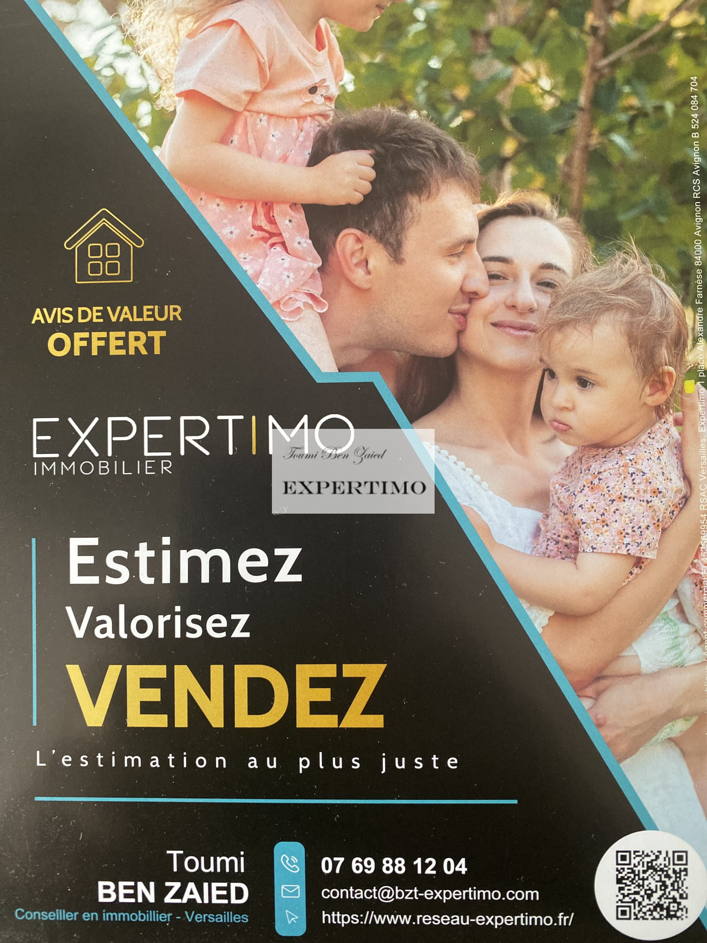Contactez votre conseiller EXPERTIMO : Toumi BEN ZAIED, Tél. : 07 69 88 12 04 EI - Agent commercial immatriculé au RSAC de Versailles numéro 453 589 954