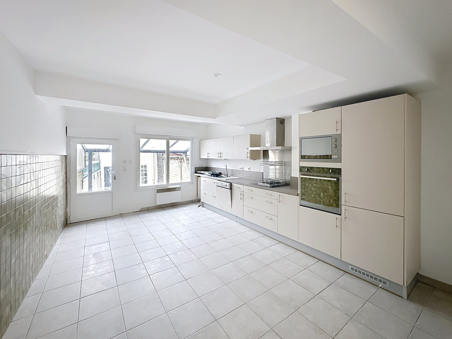 Elle se compose au RDC d'une grande pièce de vie ouverte sur la cuisine totalement équipée (48 m2) et d'un WC séparé.