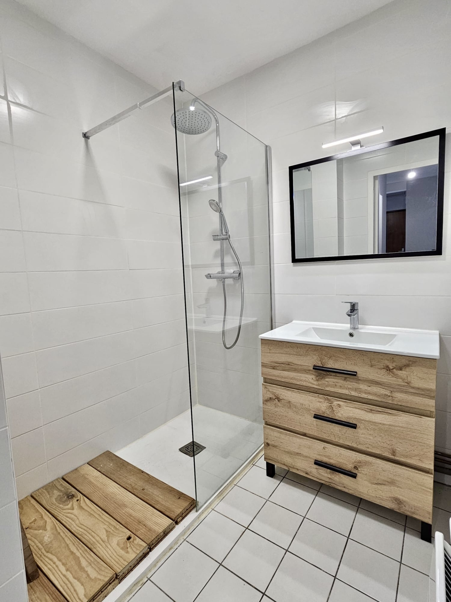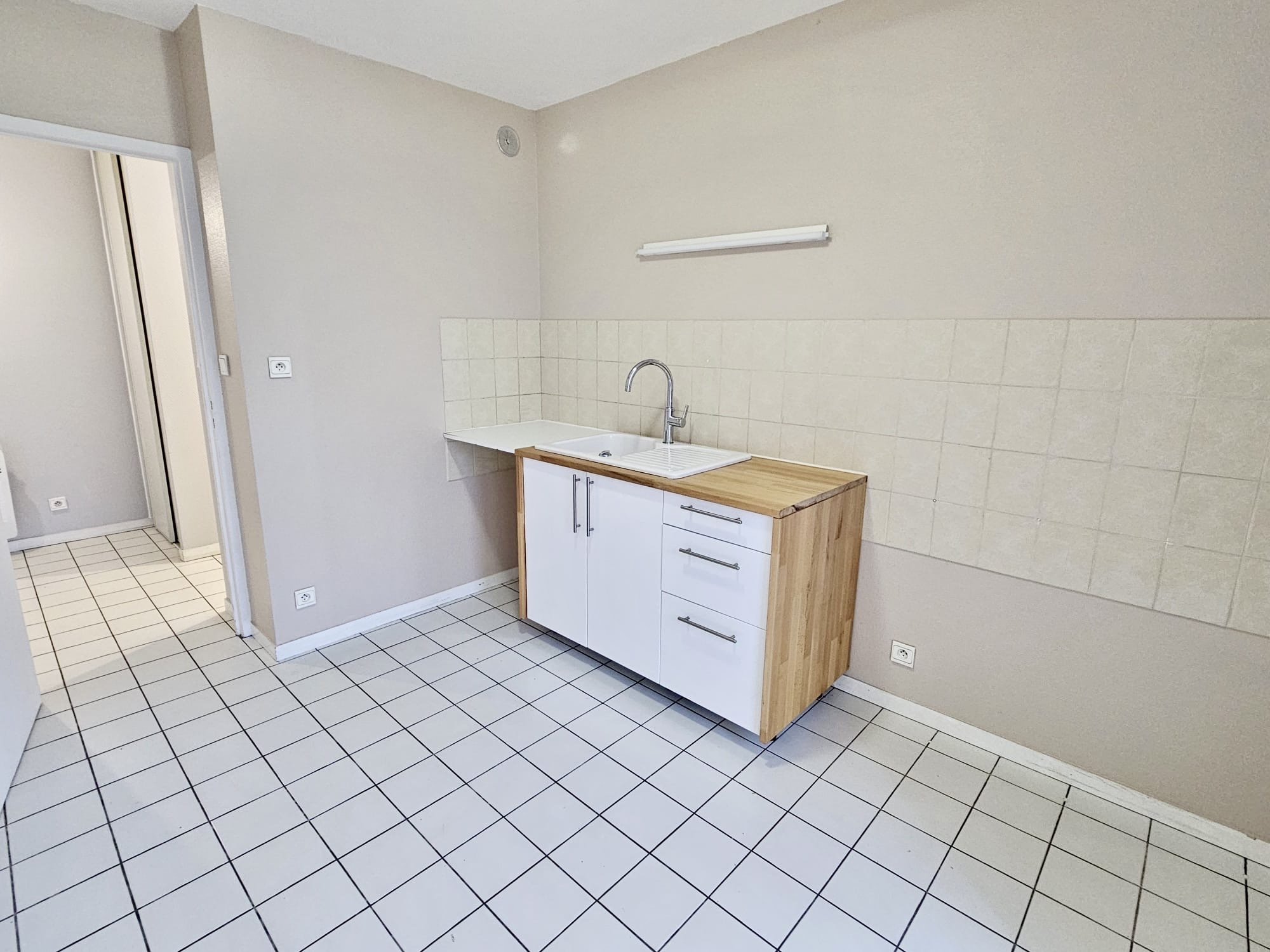 L'appartement se compose d'une entrée avec placard desservant un salon séjour, une cuisine séparée ( avec meuble évier ) et une terrasse, une chambre avec placard, une salle d'eau récemment refaite, un WC.