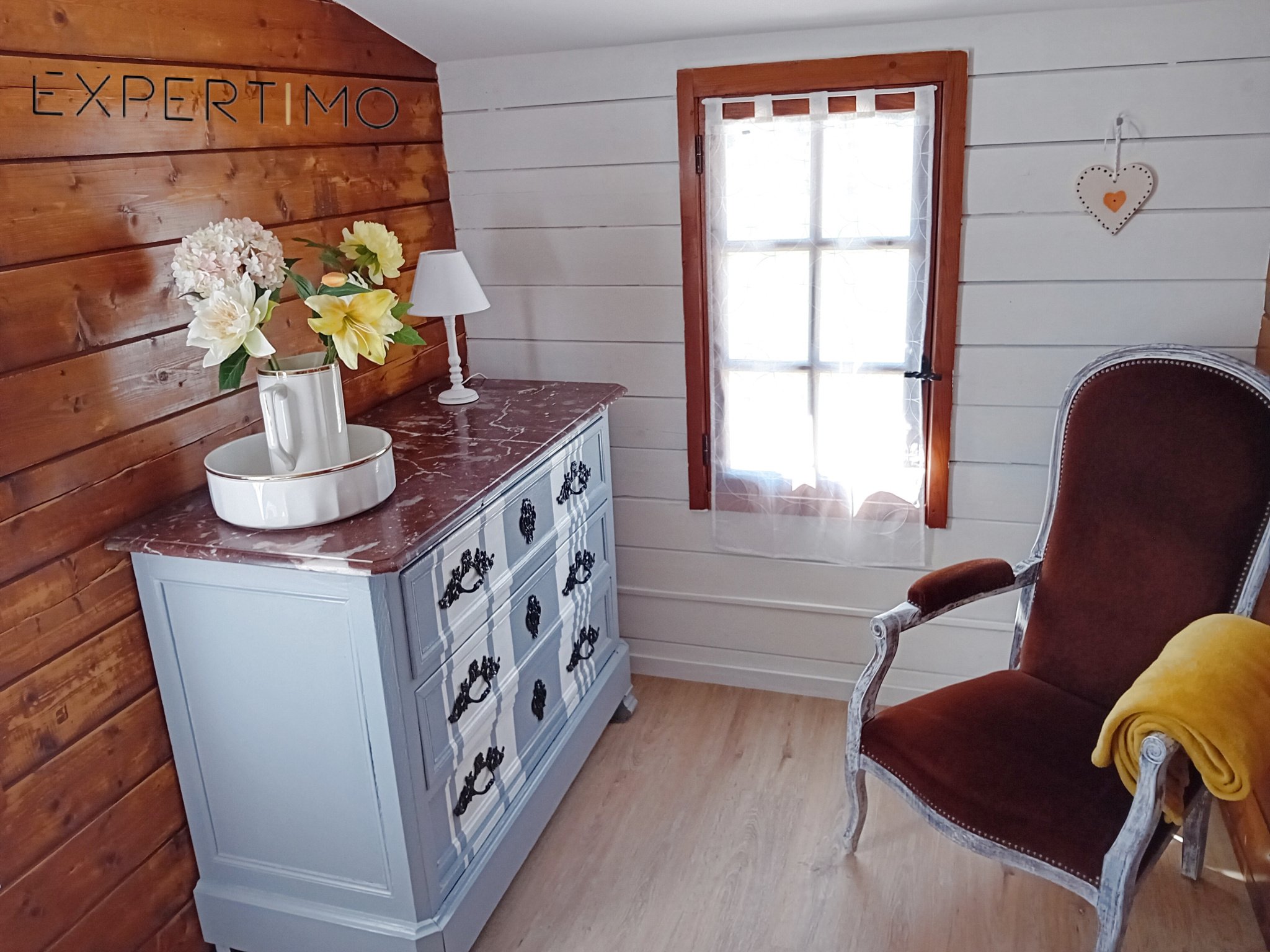 Il est composé d'une entrée séparée, d'un séjour lumineux équipé d'une cheminée électrique murale avec flamme, d'une cuisine ouverte équipée, d'une chambre avec sa literie de très bonne qualité, d'une salle d'eau avec douche - vasque - wc - sèche serviettes - VMC autonome et d'une buanderie pour le rangement (dressing - branchement machines à laver). Et si le chalet ne vous suffit pas sachez que toute la parcelle et constructible.