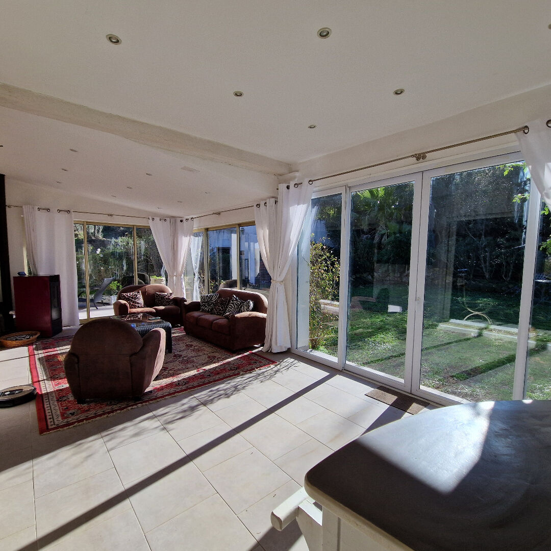 Située dans un environnement résidentiel et particulièrement calme, à seulement 6 km du village et moins de 15 km des plages de Sainte-Maxime, cette spacieuse villa familiale développe 205 m² habitables sur un terrain de 2 008 m². Édifiée en 2008, la maison offre de beaux volumes et une organisation fonctionnelle. Elle s’ouvre sur une entrée avec toilettes invités, menant à un double séjour lumineux, prolongé par deux baies vitrées à galandage donnant accès à une véranda chauffée de 26 m², équipée d’un poêle à granulés. La cuisine indépendante, complétée par une arrière-cuisine, bénéficie également d’un accès direct à la véranda et au séjour. L’espace nuit de plain-pied comprend une suite parentale avec chambre, dressing et salle de bains avec toilettes, un bureau, deux chambres supplémentaires, ainsi qu’une salle de bains avec toilettes. À l’étage, deux chambres viennent compléter l’ensemble, accompagnées d’une salle d’eau avec WC à finaliser (réservations déjà en place). Les annexes constituent un atout majeur : double garage avec atelier et cave, pour une surface totale d’environ 100 m². La maison dispose de plusieurs modes de chauffage assurant confort et adaptabilité : climatisation réversible, poêle à pellets, poêle à bois et cheminée à foyer fermé. Assainissement individuel d’origine. Les extérieurs restent à aménager, laissant libre cours à vos projets, avec notamment la possibilité d’implanter une piscine. Un bien rare, idéal pour une grande famille ou une résidence secondaire, alliant calme, espace et proximité du littoral.