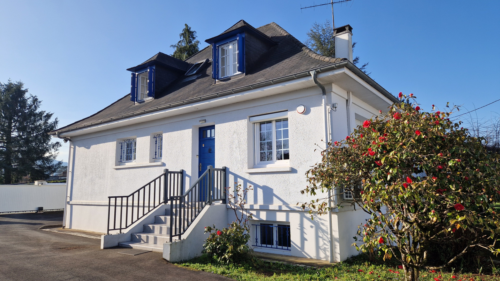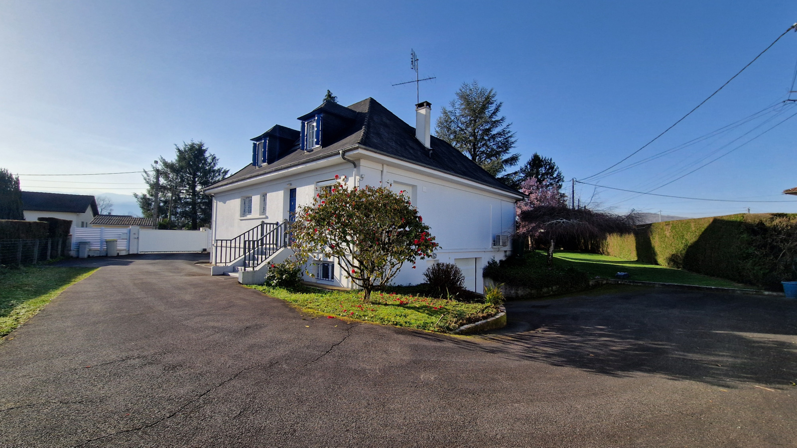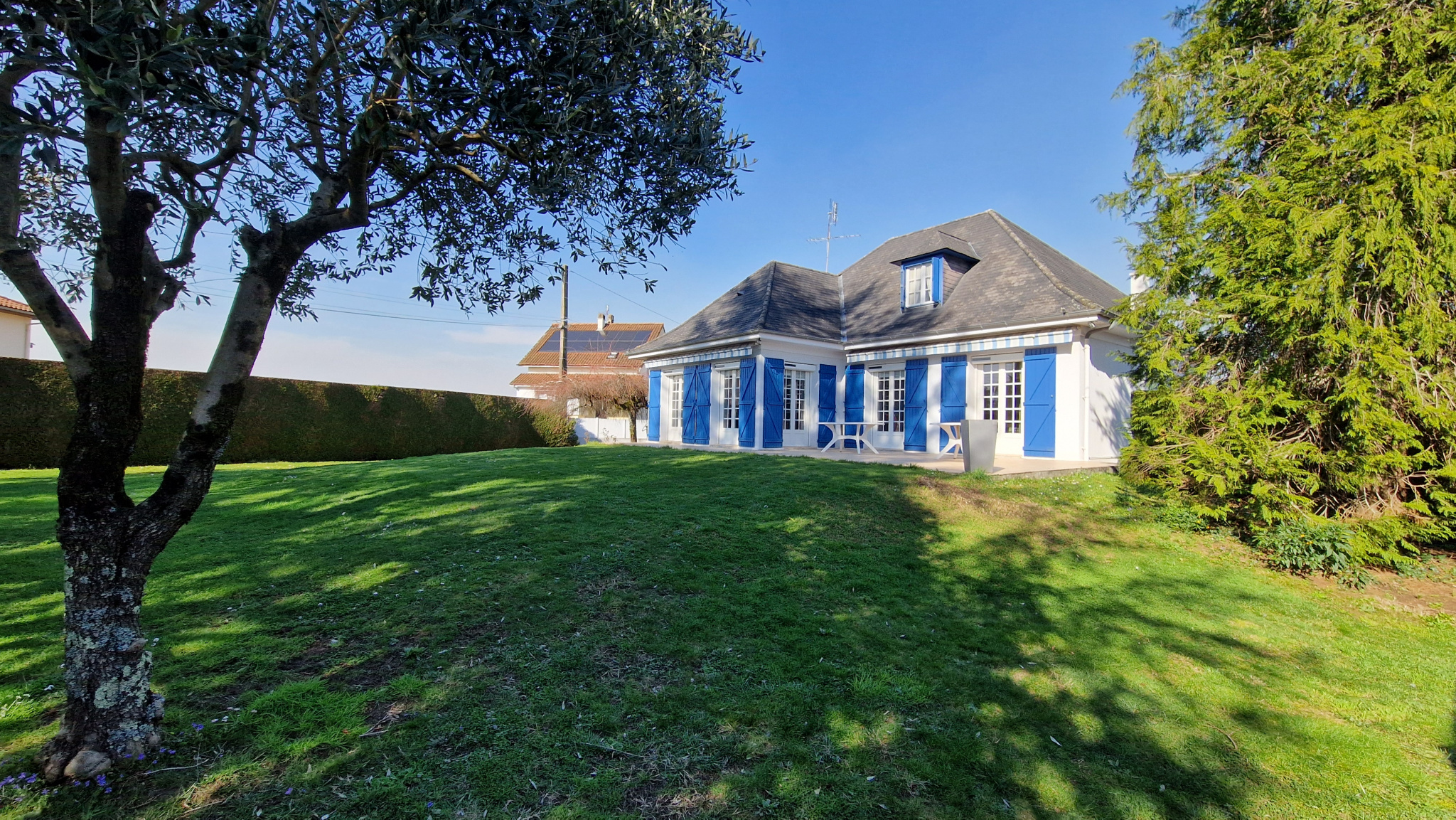 Côté prestations, le parc est parfaitement clôturé et entretenu, un robot remplit sa mission de tonte, le garage est équipé d’une porte électrique, de double vitrage et les volet roulants solaires ont été posés en 2020, le chauffage est assuré par le chauffage central (chaudière Gaz Bosch 2019 et radiateurs 2020), un insert réchauffe l’ambiance, la climatisation est installée dans les chambres de l’étage, une chambre du rdc et le salon. La maison est équipée d’une alarme et d’un système de vidéo-surveillance.