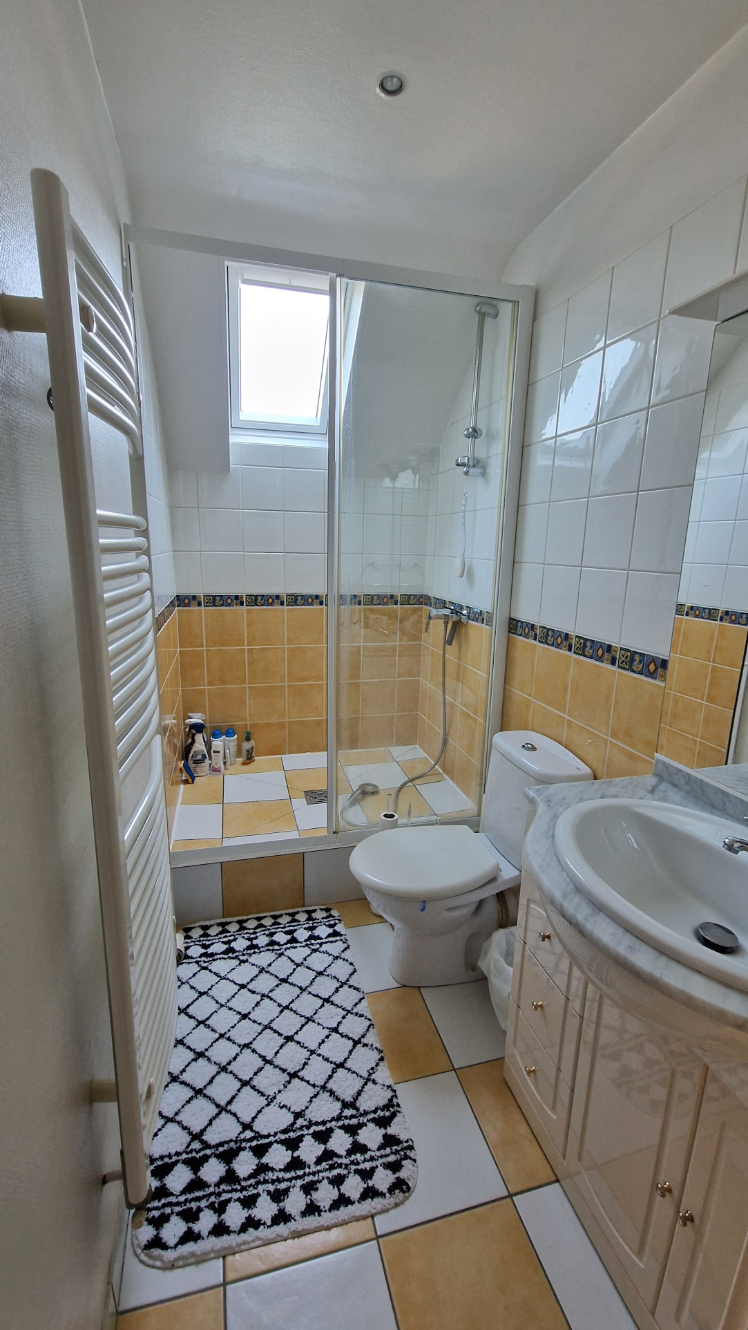 A l’étage, les 38 m² se composent  d’un palier avec rangements, deux chambres dont une avec dressing et une salle de douche avec WC.