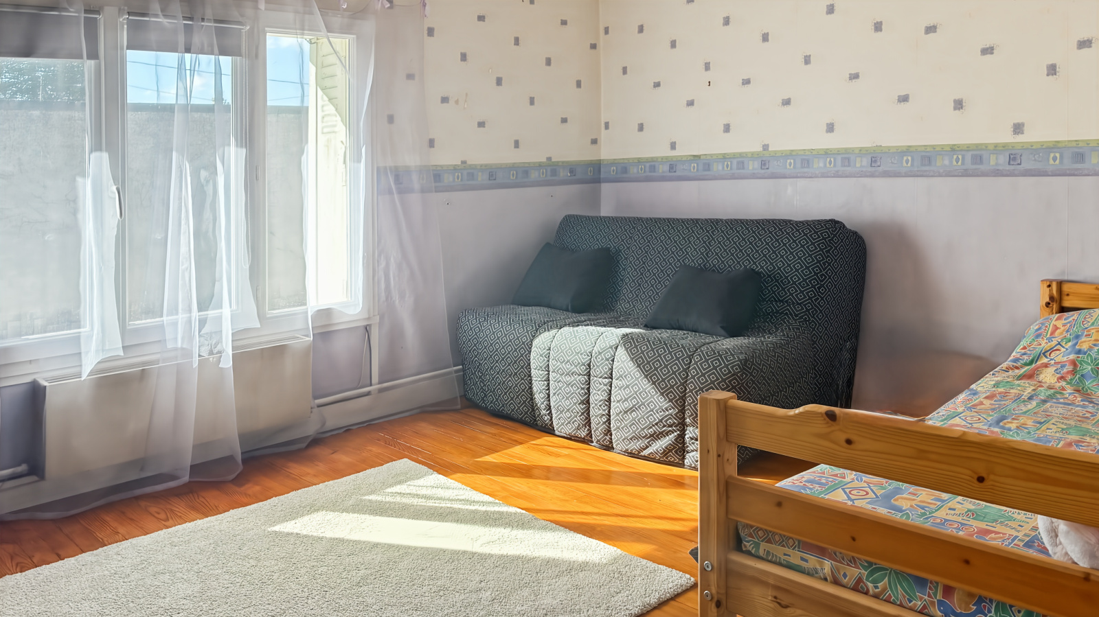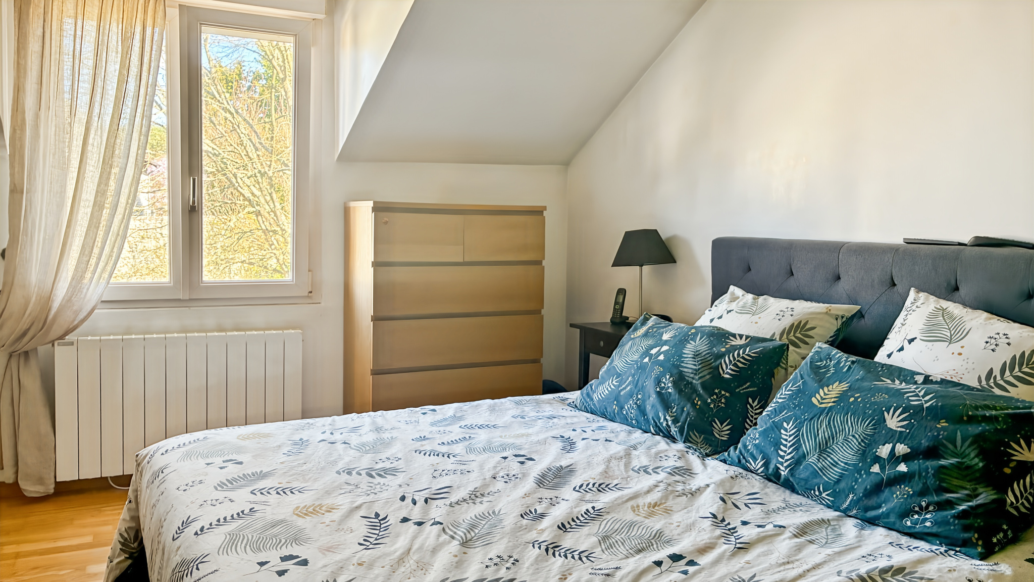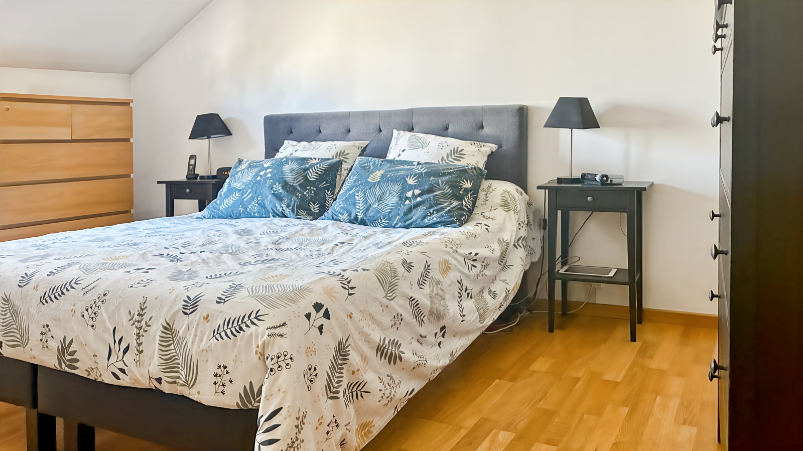 À l’étage, quatre chambres pourvues de dressing et rangements composent l’espace nuit. Les volumes sont équilibrés et lumineux, laissant la liberté d’imaginer différentes configurations : chambres familiales, bureau ou espace d’atelier. Une salle de bain disposant de sanitaires complète cet étage.