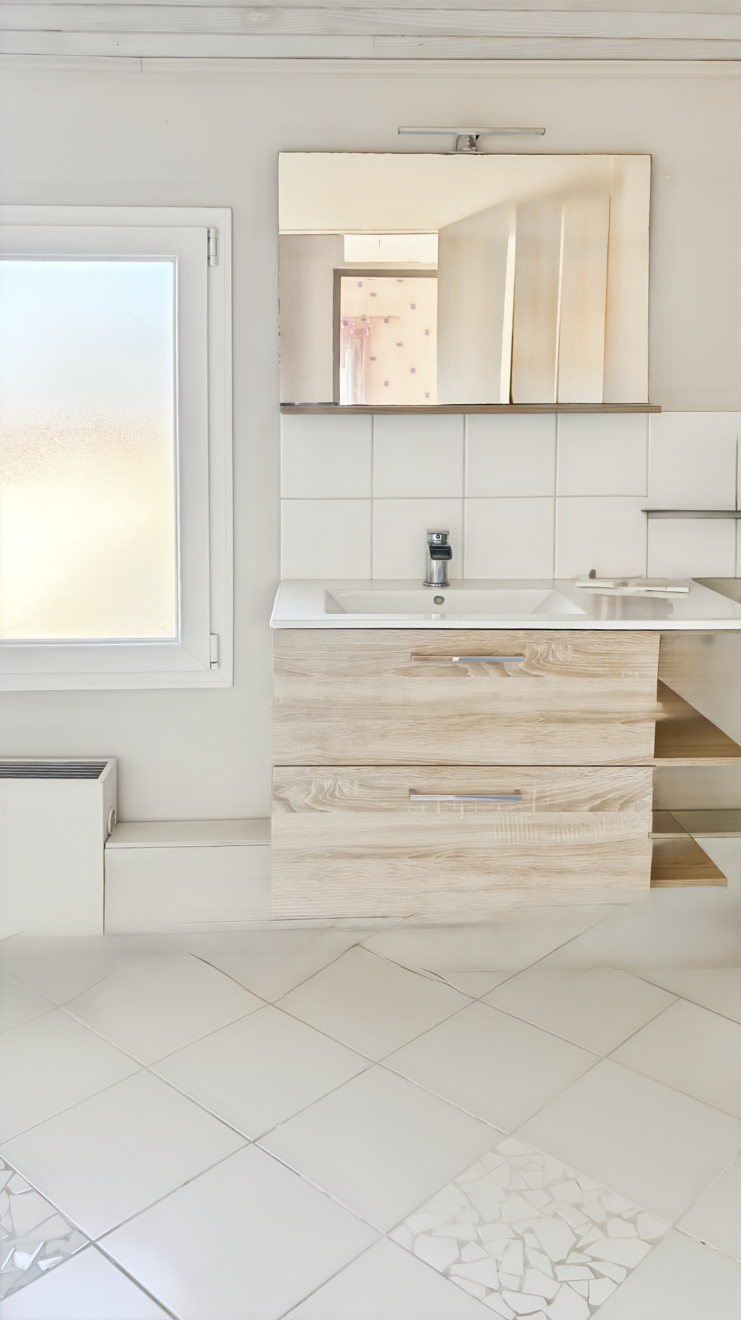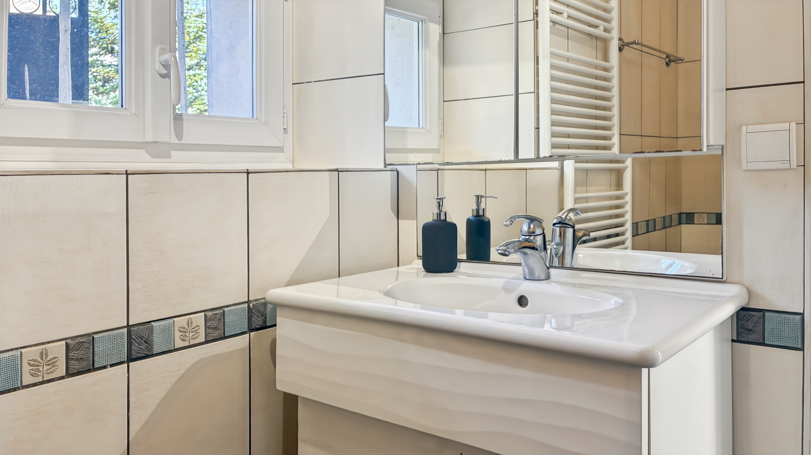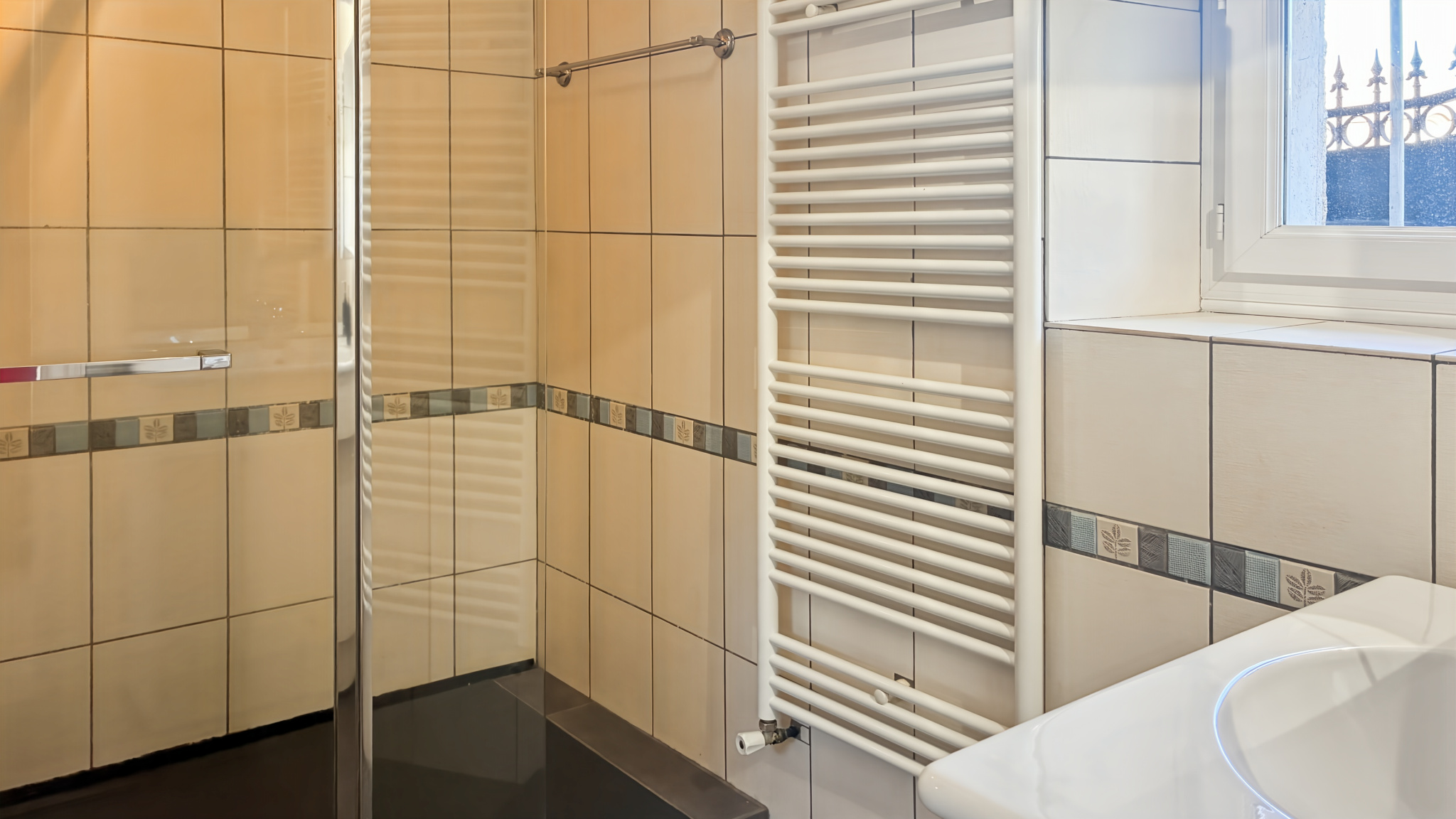Ce niveau accueille également une salle d’eau, des toilettes indépendants et une buanderie, discrètement intégrés à l’organisation de la maison.
